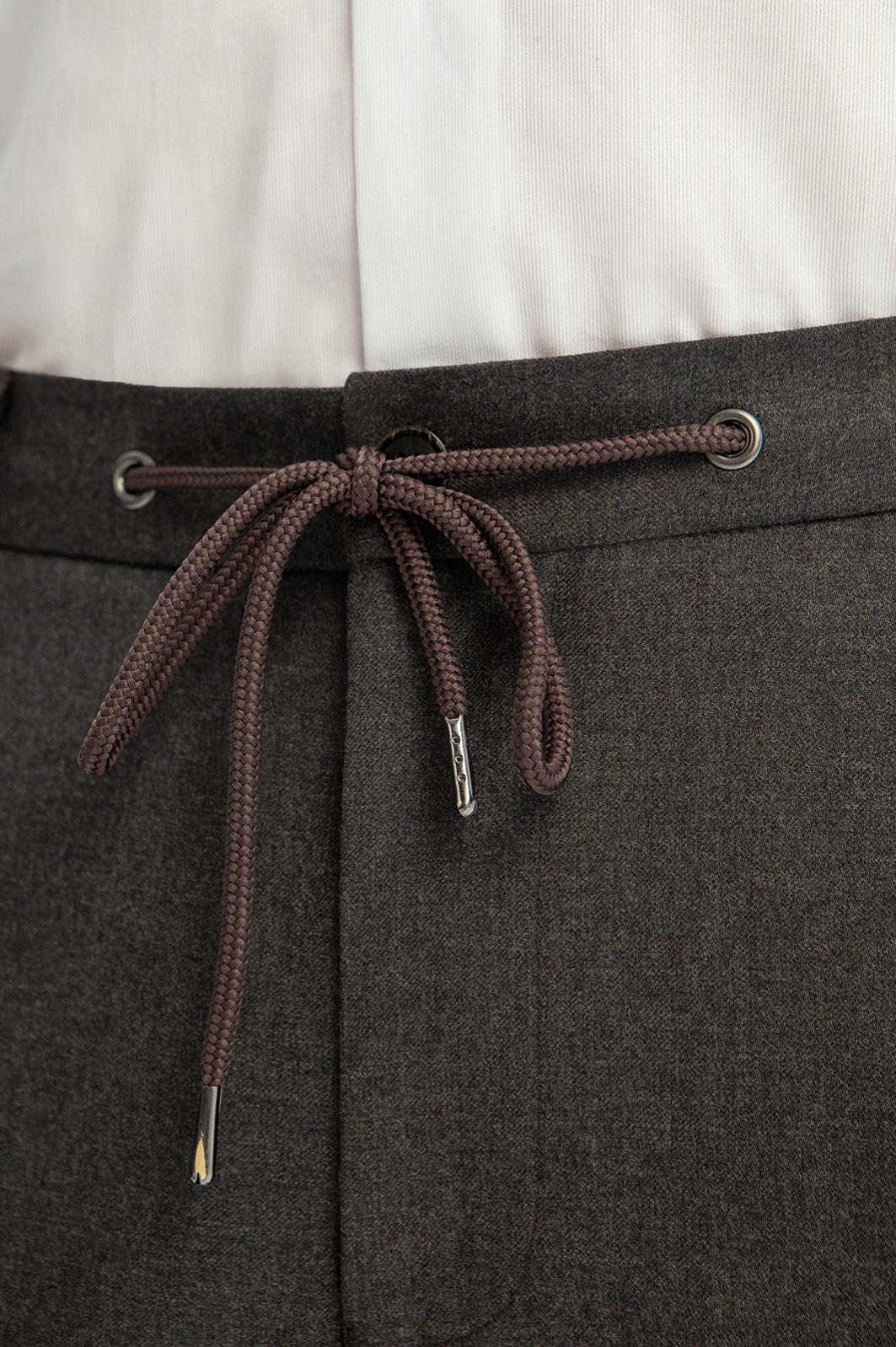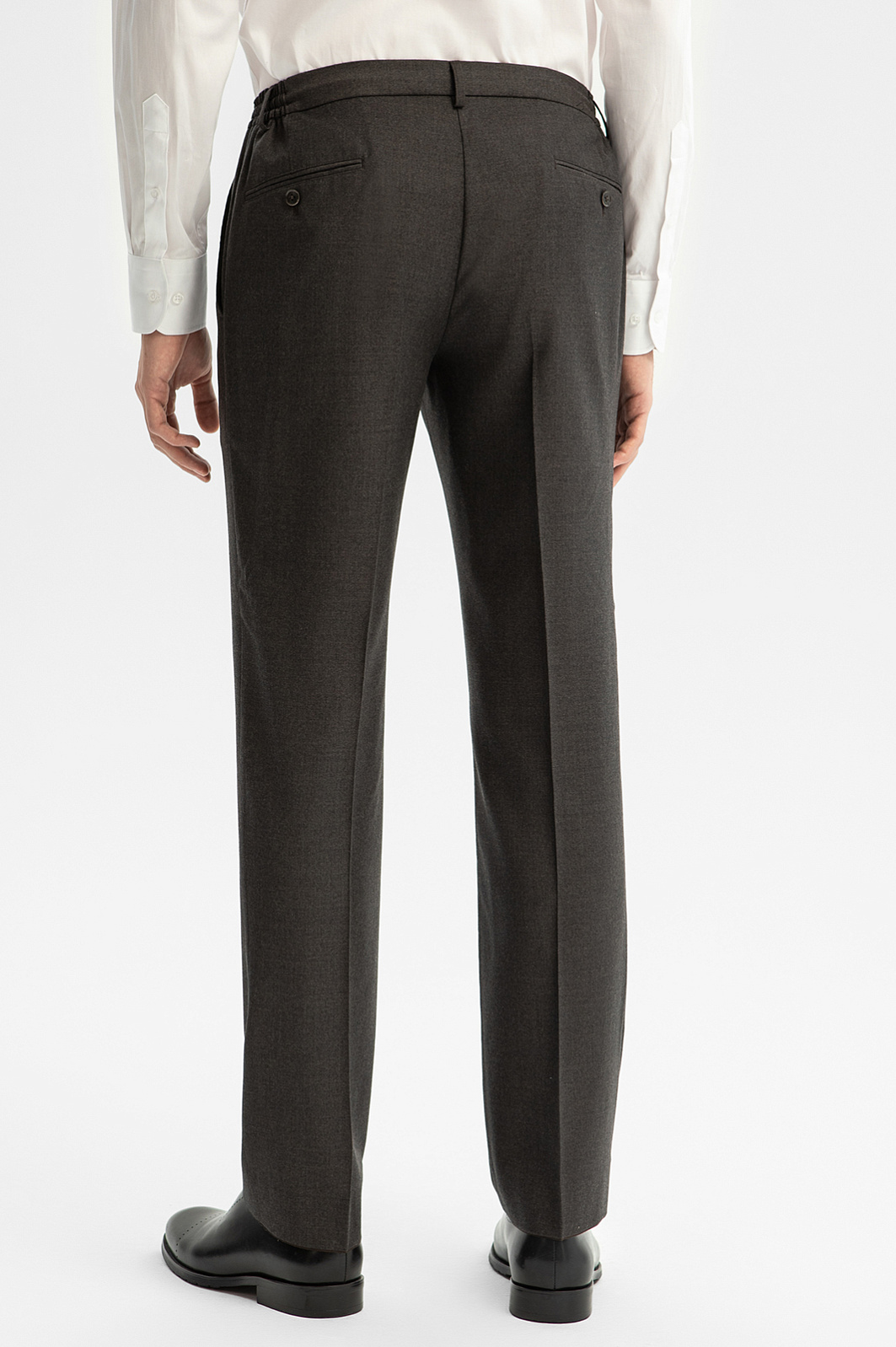 Серо-коричневые брюки KANZLER из немнущейся шерсти на кулиске — удобный вариант для офиса и менее официальный выходов, требующих элегантного вида. Приталенный силуэт и стрелки задают вертикальное направление, визуально вытягивая силуэт. Кулиска позволяет регулировать объем талии. Подкладка из гладкого прочного материала облегчает надевание. Брюки сшиты из премиальной тончайшей сертифицированной шерсти Супер 120 S (100%), которая сохраняет естественное тепло и отличается непревзойденной износоустойчивостью и способностью восстанавливать форму. Параметры модели: рост 191, 97-77-99 Размер на модели: 50