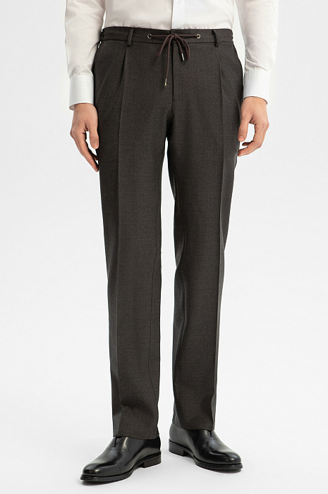 Брюки из шерсти, устойчивой к сминанию, цвет коричневый, цена 14 990 руб., код 268965 - купить в Саратове в интернет-магазине KANZLER
