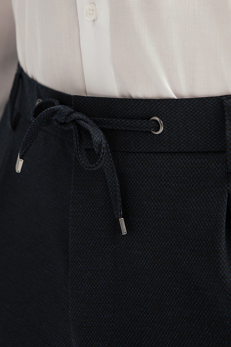 Синие брюки на кулиске из трикотажной ткани, цвет синий, цена 10 990 руб., код 269099 - купить в Саратове в интернет-магазине KANZLER