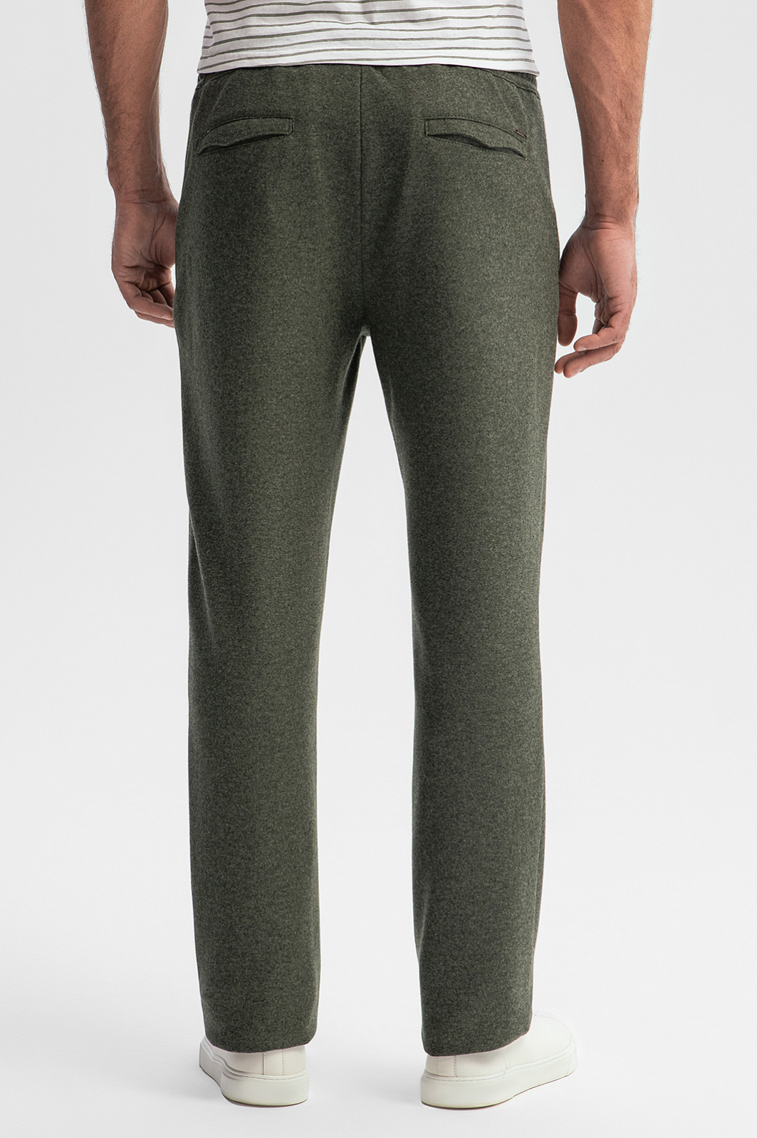Удобные темно-зеленые брюки KANZLER на кулиске из роскошной шерсти (100%) — универсальная всесезонная модель из лимитированной коллекции, которая отшивается из дорогих изысканных тканей, сотканных из органических волокон, сертифицированных и ультрасовременным материалов. Модель сделана из тонкой овечьей шерсти (100%), произведенной итальянской мануфактурой Vitale Barberis Canonico, которая славится своими шерстяными тканями с 17 века. Натуральный материал хорошо держит форму и сохраняет естественное тепло тела. Секрет невероятного комфорта модели — в мягкой текстуре, гениальном в своей простоте свободном крое и кулиске, с помощью которой можно регулировать объем талии. Параметры модели: рост 192, 108-83-102 Размер на модели: 50