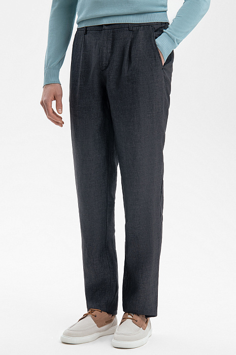 Дизайн роскошных темно-серых брюк KANZLER из лимитированной коллекции задан чистыми линиями и свободным силуэтом. Модель сшита из дорогой льняной ткани, которую производит итальянская фамильная мануфактура Vitale Barberis, основанная более 360 лет назад. Удобный Классический крой с мягкими защипами комплементарно смотрится на фигуре любого типа. Для составления костюмной пары брюки можно дополнить темно-серым льняным пиджаком KANZLER. Суперкачественная фактурная ткань, сотканная изо льна (100%), идеально подходит для межсезонья и теплых дней. Натуральные гипоаллергенные волокна поддерживают циркуляцию воздуха и отводят влагу, создавая приятную для тела температуру. Параметры модели: рост 189, 91-78-95 Размер на модели: 50
