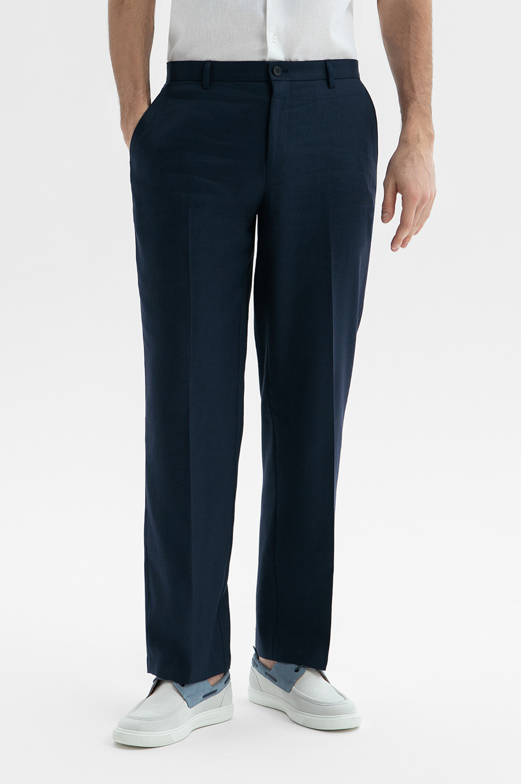 Брюки изо льна, тенсела и хлопка, цвет синий темный, цена 14 990 руб. - купить в интернет-магазине KANZLER