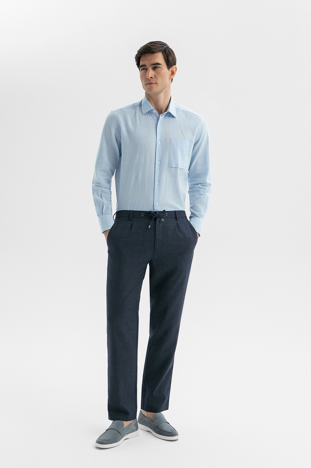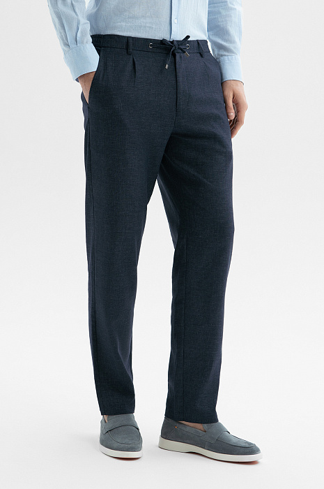 Брюки льняные, цвет синий темный, цена 12 990 руб. - купить в интернет-магазине KANZLER