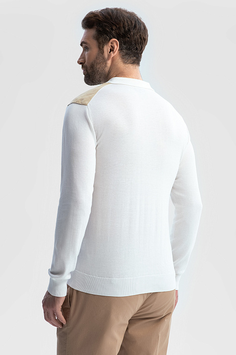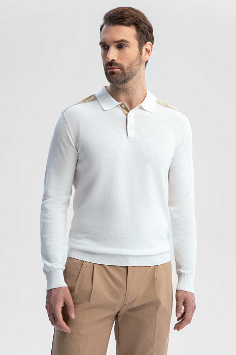 Поло из хлопка, шелка и льна с отделкой из алькантары, цвет белый, цена 8 990 руб., код 269187 - купить в Саратове в интернет-магазине KANZLER
