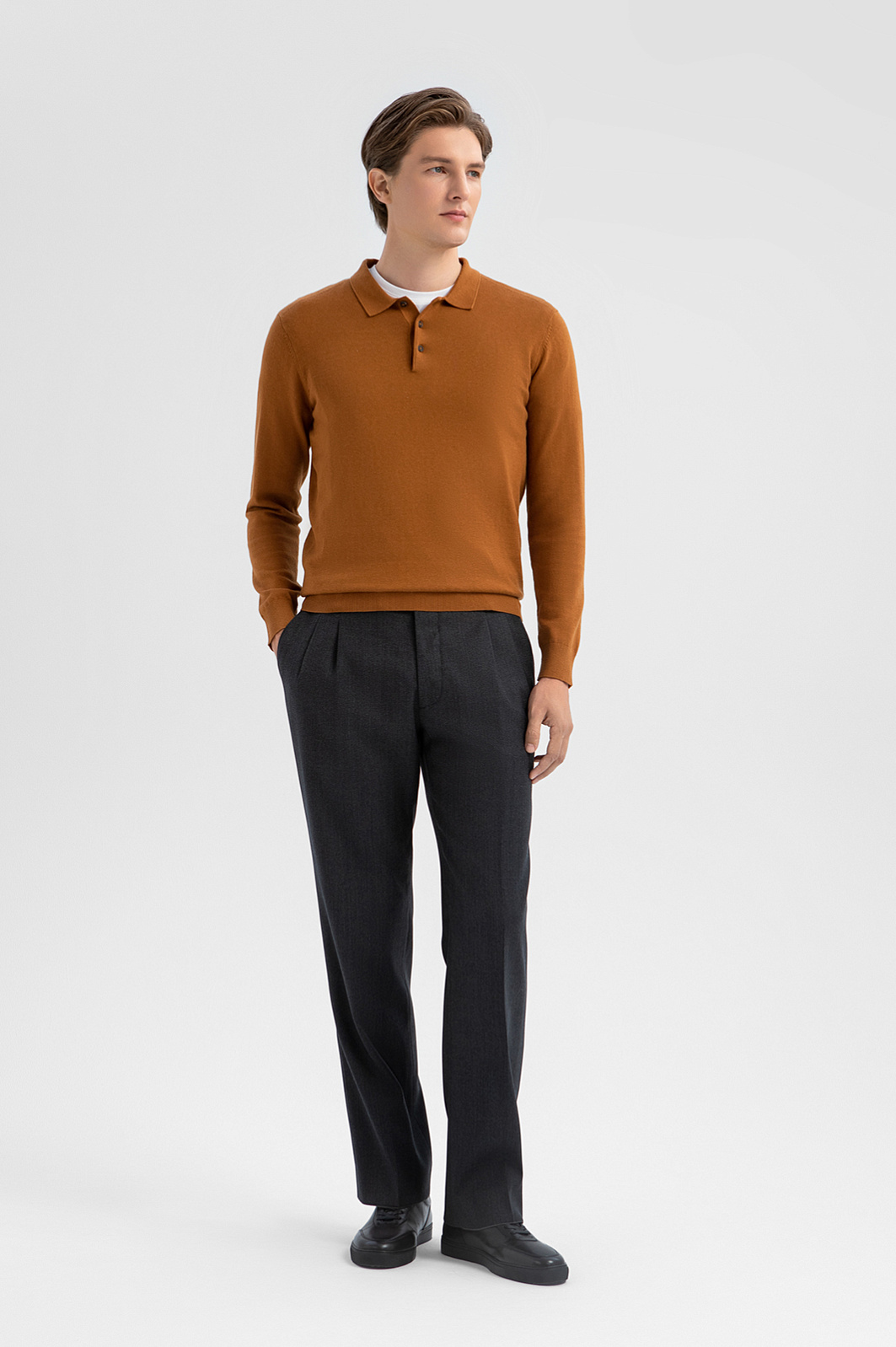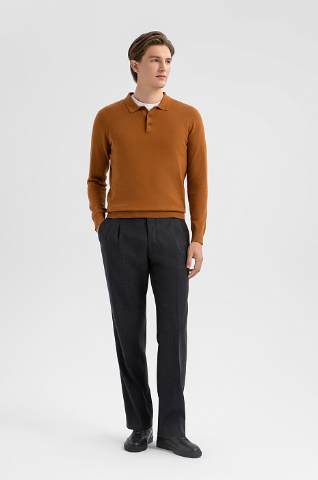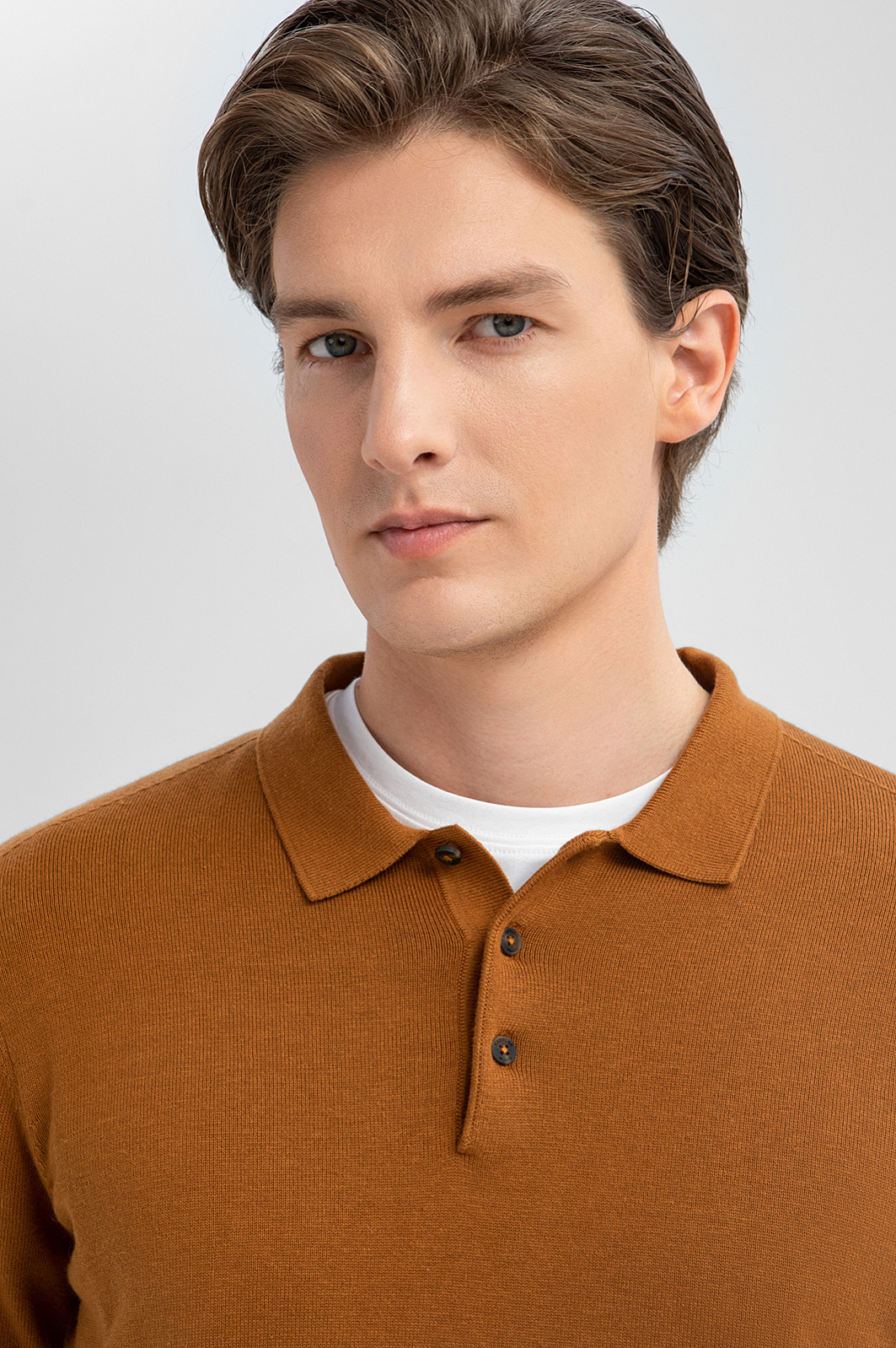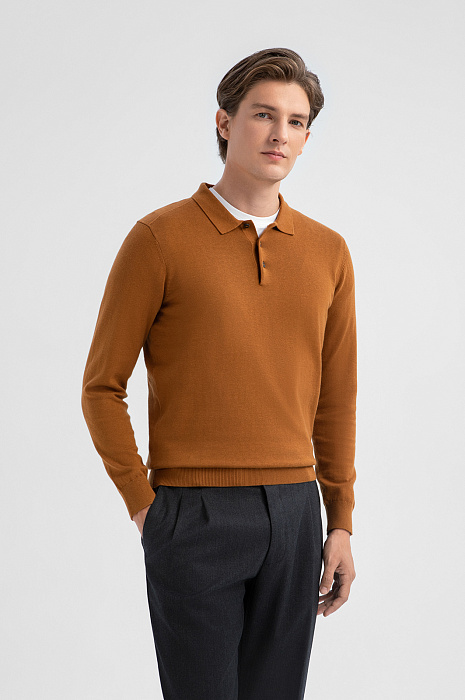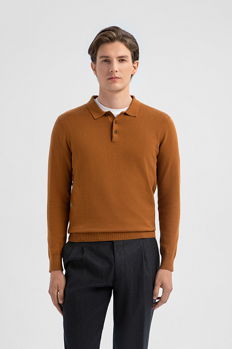 Джемпер поло из хлопка, шерсти и кашемира, цвет коричневый, цена 5 990 руб., код 270221 - купить в Саратове в интернет-магазине KANZLER