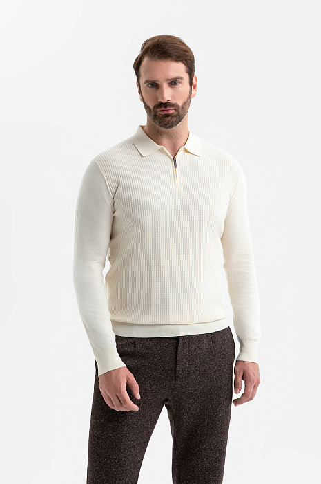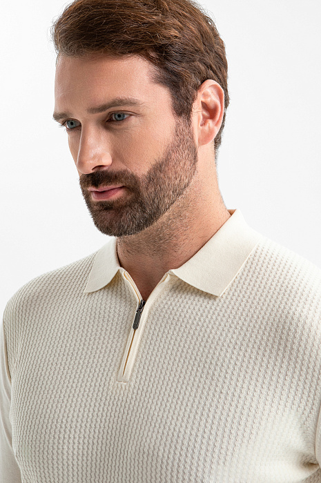 Джемпер поло из хлопка Пима, цвет бежевый, цена 8 990 руб., код 270234 - купить в Саратове в интернет-магазине KANZLER