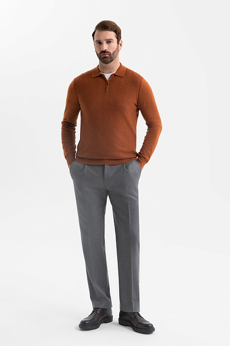 Джемпер поло из шерсти и шелка, цвет коричневый, цена 7 990 руб., код 270238 - купить в Саратове в интернет-магазине KANZLER