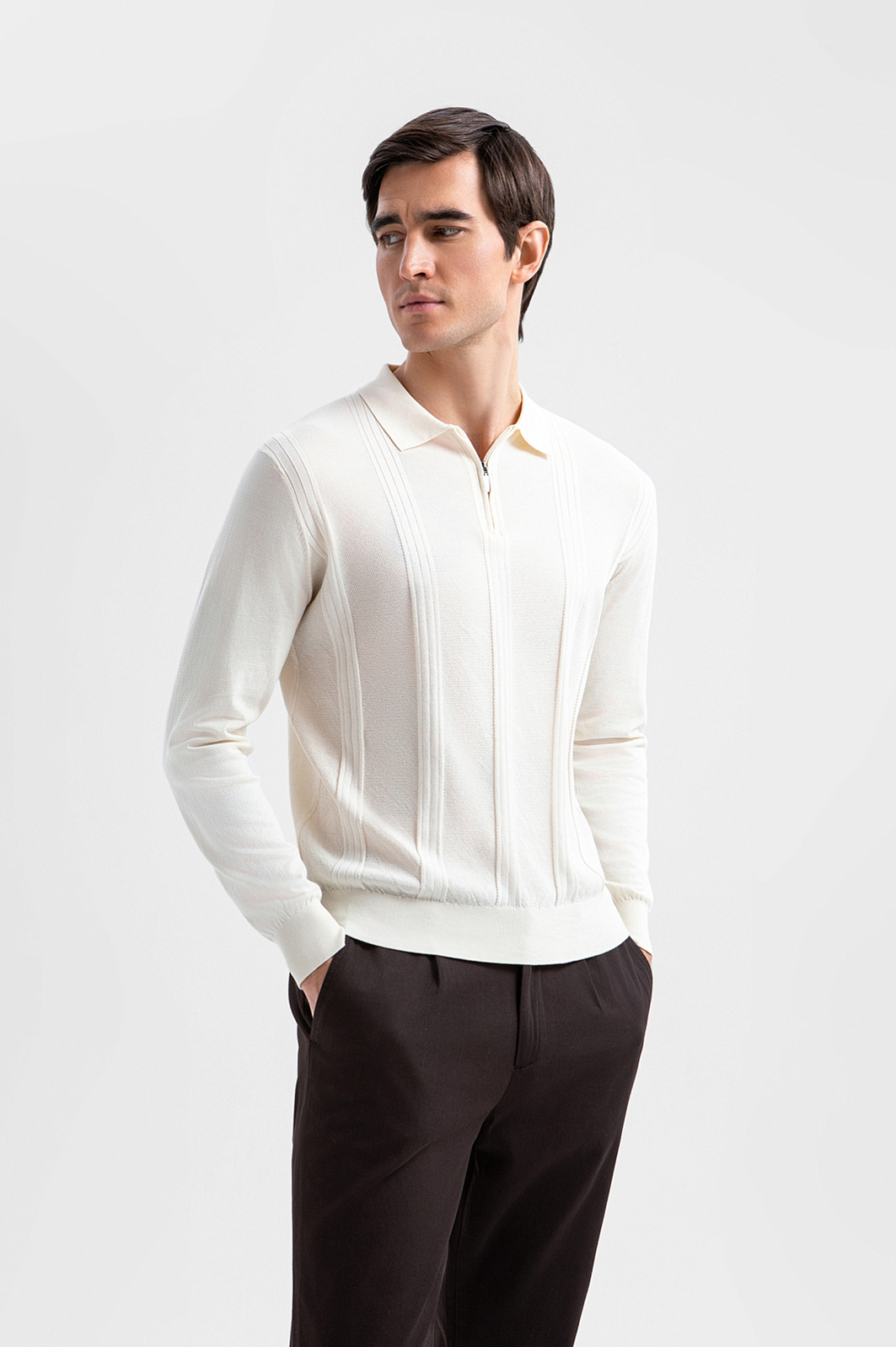 Поло KANZLER с длинным рукавом отличают безупречное качество материала, фактурная вязка и нежный молочный оттенок. Его естественная элегантность ассоциируется с аристократическим стилем дорогих европейских курортов. Лаконичный спортивный дизайн дополнен изысканными деталями. Широкие фактурные полосы создают архитектурную выразительность и визуальный ритм, а небольшая функциональная молния служит современным акцентом. Премиальный хлопок Пима (100%) — ценный длинноволокнистый материал, который ценится за шелковистую текстуру и долговечность. Мягкий трикотаж поддерживает приятную для тела температуру и сохраняет роскошный вид из сезона в сезон.