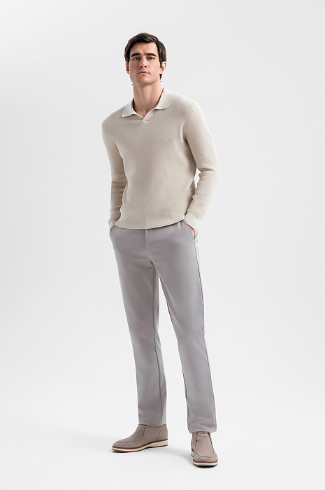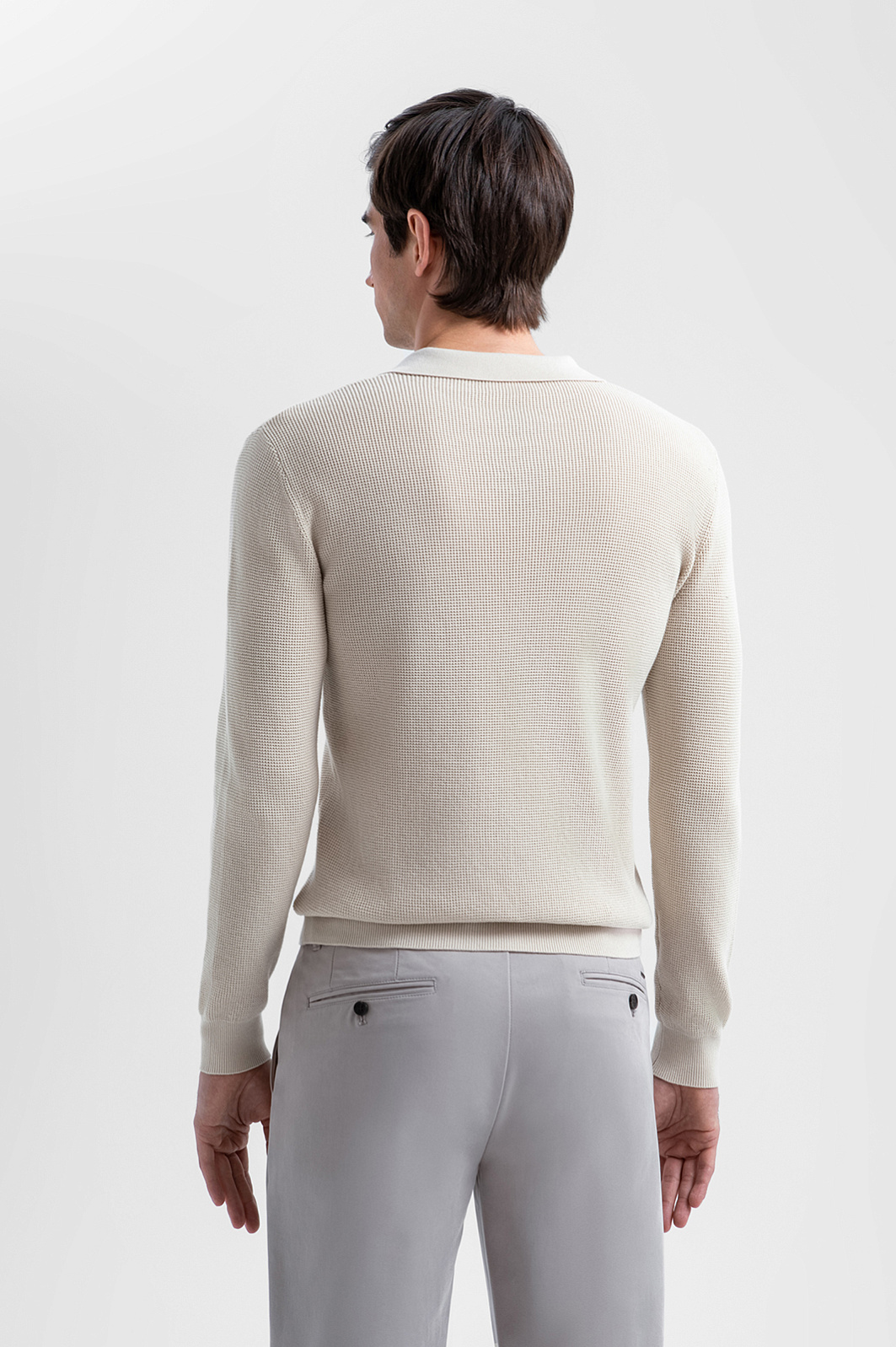 Поло KANZLER с длинным рукавом выполнено из 100% хлопка. Его светло-бежевый оттенок создаёт ощущение лёгкости и подходит для городских и более расслабленных курортных образов. Неглубокий треугольный вырез горловины добавляет модели динамичный спортивный характер. Длинный рукав делает поло комфортным выбором для межсезонья и прохладных дней. Мягкие трикотажные резинки на рукавах и по низу надёжно фиксируют края и обеспечивают аккуратную посадку. Полотно с лёгкой фактурой создано из чистого хлопка. Натуральные гипоаллергенные волокна поддерживают комфортную температуру и ощущение свежести в течение всего дня.