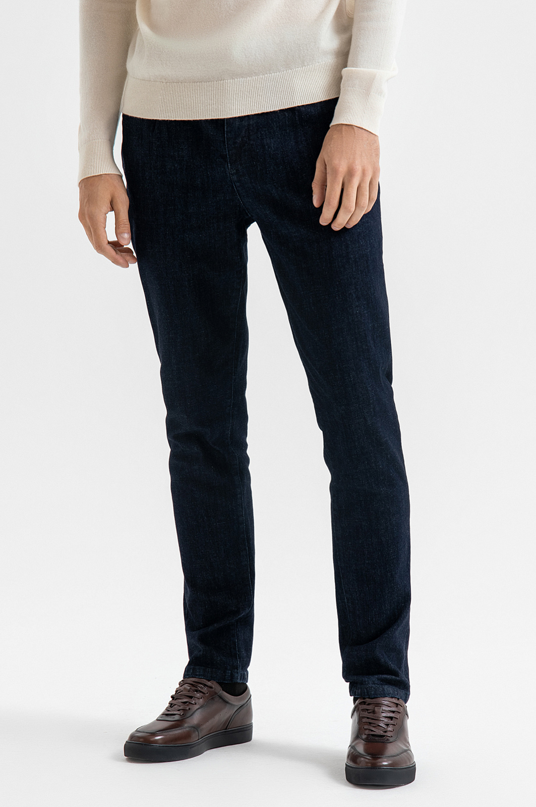 Джинсы KANZLER из лимитированной коллекции — воплощение продуманного дизайна и превосходного качества. Выразительный глубокий синий цвет подчёркивает универсальность модели, которая может стать основой как повседневных, так и для более собранных образов в стиле умный кежуал. Прямой силуэт делает джинсы актуальными вне зависимости от модных трендов. Пуговицы с фирменным логотипом на застежке спереди и на задних карманах добавляют ретро-шика. Прочная потайная металлическая застежка-крючок обеспечивает надежную фиксацию. Модель выполнена из плотного качественного денима (99% хлопок, 1% эластан), который сохраняет форму, мягко садится на любой тип фигуры и обеспечивает комфорт в движении. Параметры модели: рост 192, 101-76-97 Размер на модели: 34