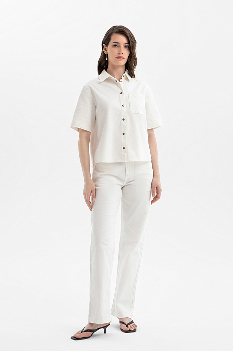 Белоснежные джинсы KANZLER привносят в образ расслабленный шик и курортную элегантность. Они созданы для тёплых солнечных дней, которые хочется проживать медленно, наслаждаясь каждым мгновением. Модель с высокой посадкой и прямыми, умеренно широкими штанинами украшает фигуру любого типа. Аккуратные фирменные заклёпки добавляют дизайну выразительный, но сдержанный штрих. Мягкий деним выполнен из гипоаллергенного дышащего хлопка, который поддерживает приятную для тела температуру. Небольшое добавление спандекса (2%) делает ткань более эластичной — она подстраивается к движению, сохраняя аккуратную посадку и форму.