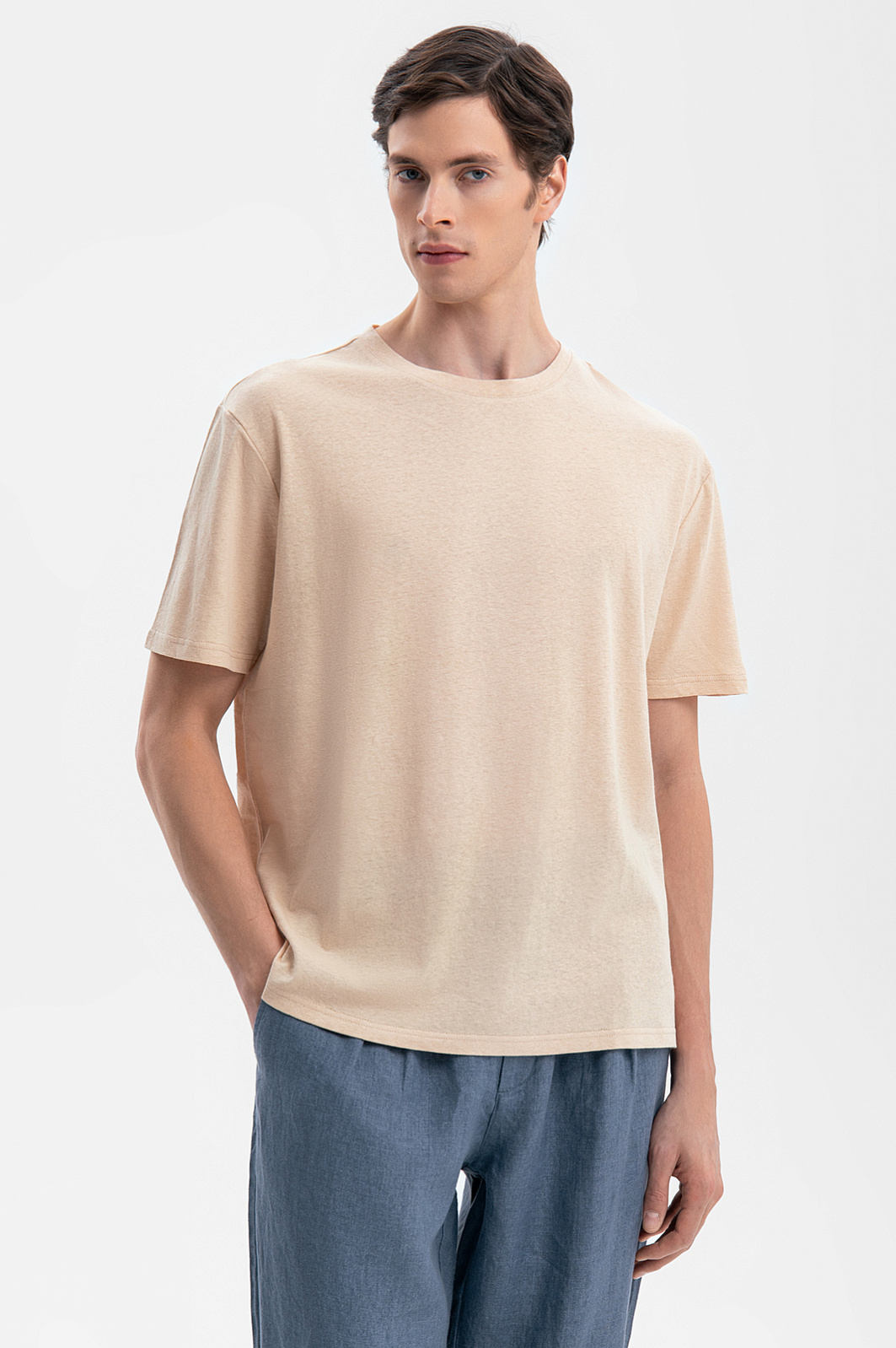 Бежевая футболка изо льна и хлопка в Саратове