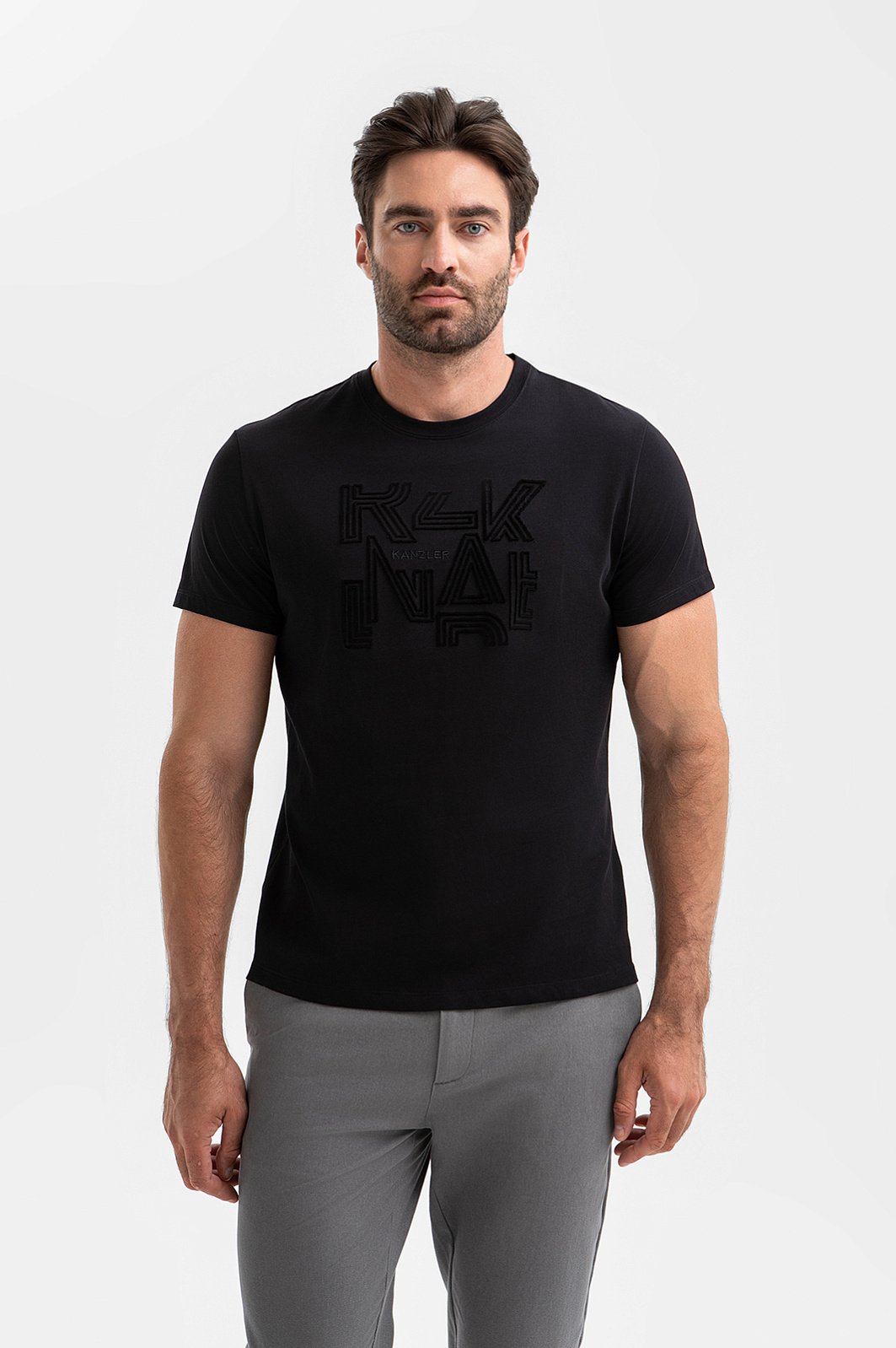Чёрная футболка KANZLER с принтом с классическим круглым вырезом из мягкого 100-процентного хлопка создана для тех, кто ценит лаконичность и комфорт. Она легко вписывается в любой аутфит — от спортивного образа до кежуал. Прилегающий силуэт подчёркивает фигуру, оставаясь удобным в повседневной носке. Особое внимание привлекает графичный принт на груди: он выполнен в тон и подчёркивает спортивный стиль и минимализм модели. Небольшим завершающим штрихом служит логотип. Трикотаж из гипоаллергенного дышащего хлопка мягко облегает тело, обеспечивая оптимальный температурный режим. Параметры модели: рост 192, 108-83-102 Размер на модели: M