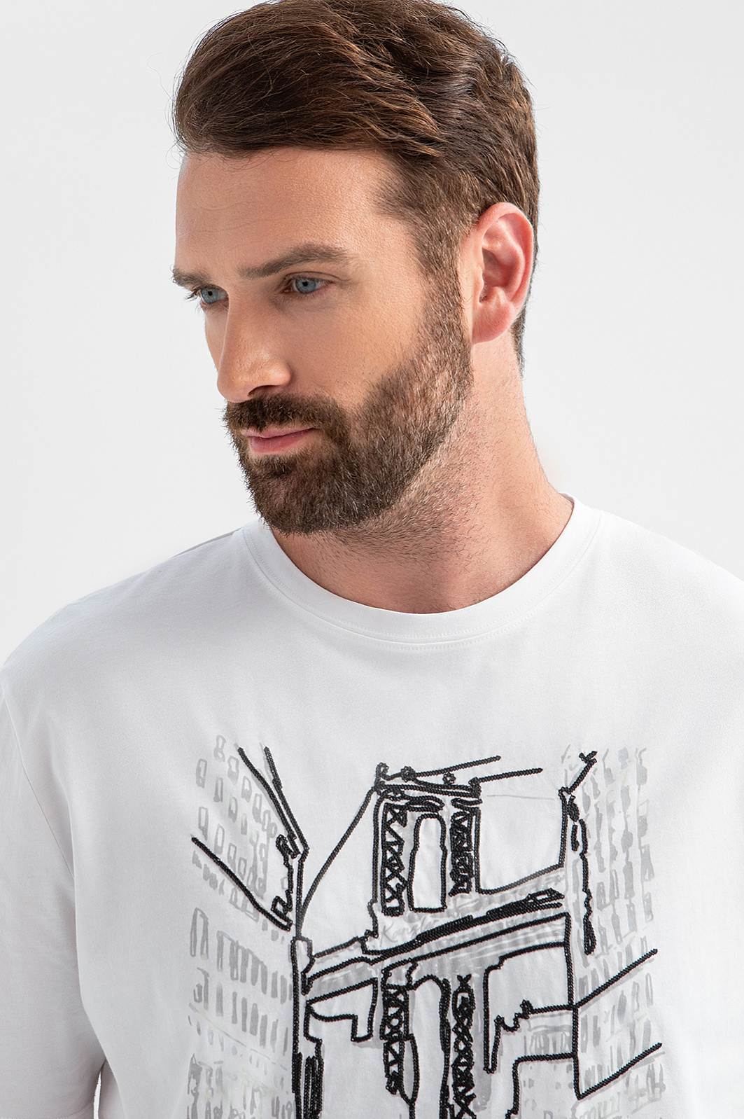 Белая футболка KANZLER создана для ценителей урбанистической эстетики. Черно-серый принт на груди изображает мегаполис с его динамичным ритмом. Модель выполнена из 100-процентного хлопка, мягкого и гипоаллергенного материала, который обеспечивает идеальный воздухообмен, отводит влагу и сохраняет форму после многократных стирок. Свободный крой дарит максимальную свободу движений. Сочетайте модель с карго, брюками или денимом. Параметры модели: рост 189, 102-80-99 Размер на модели: M