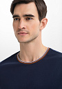Стильная футболка KANZLER из чистого хлопка в насыщенном синем цвете с классическим круглым вырезом — образец современного минимализма с элементами ретрошика. Контрастная отделка рукавов и выреза горловины коричнево-белой тесьмой отсылает к эстетике 70-х, добавляя вещи винтажный шарм. Силуэт подчёркивает фигуру, создавая динамичный образ, который легко адаптируется как к спортивному, так и к городскому стилям. Футболка создана из качественного натурального трикотажа. Гипоаллергенный воздухопроницаемый мерсеризованный хлопок (100%) хорошо отводит влагу и обеспечивает комфорт в любую погоду. Параметры модели: рост 192, 101-76-97 Размер на модели: M