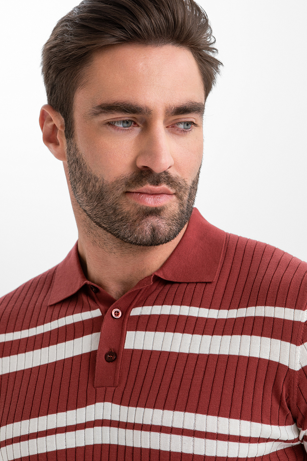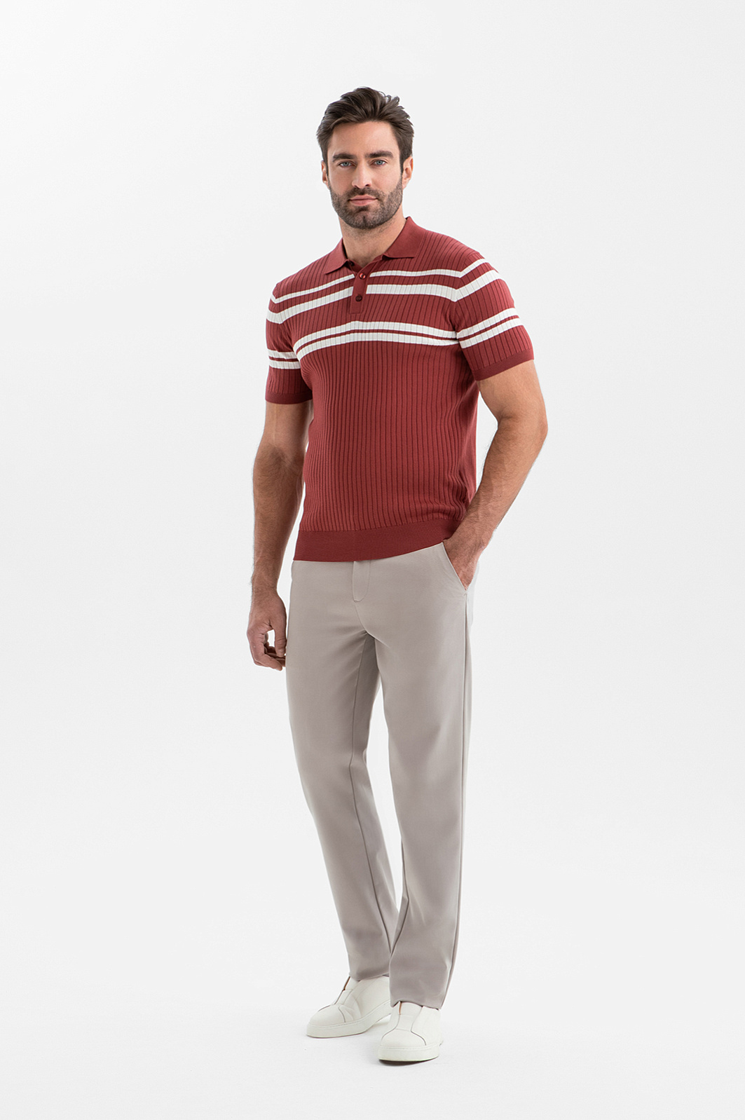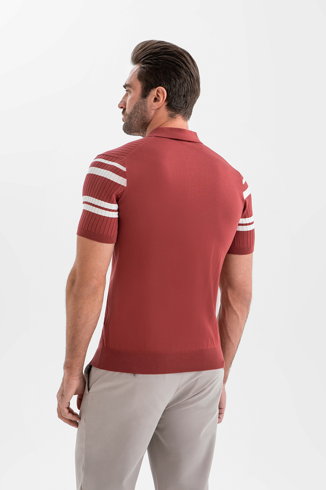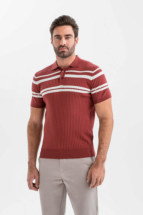 Поло KANZLER бордового оттенка из хлопка Пима — сочетание продуманного комфорта и премиального качества. Широкие белые полоски на груди и рукавах придают модели выразительность и нотку ретро-шика. Рельефный трикотаж спереди добавляет визуальную глубину и ритм. Мягкая эластичная ткань следует за движениями, не нарушая лаконичного силуэта. Дорогой хлопок Пима отличается шелковистой текстурой, лёгкостью и долговечностью. Его тонкие гипоаллергенные волокна берегут естественное тепло и защищают тело от перегревания.