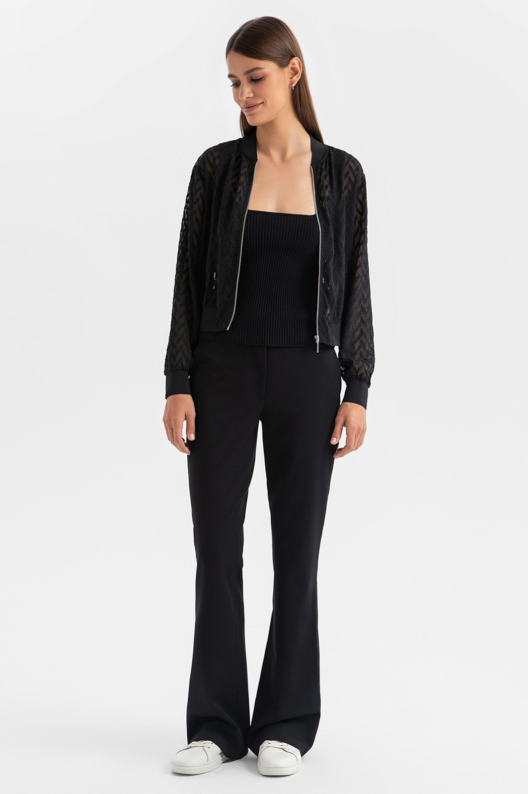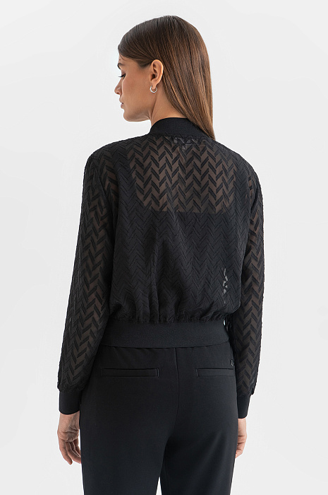 Идеальный баланс женственности, игривости и комфорта – черный кардиган-бомбер KANZLER. Канонический фасон в новом прочтении – укороченная модель из полупрозрачного материала выглядит изящно, а узор шеврон создает небольшой контраст и добавляет образу глубины. Материал премиального качества обладает долговечностью, отлично сохраняет форму и легок в уходе. Прогулка по городу, открытие выставки, встреча с друзьями – кардиган станет главным акцентом множества образов. Стилисты предлагают дополнить модель черным топом и расклешенными брюками для создания акутального образа. Параметры модели: рост 175, 86-62-92 Размер на модели: S
