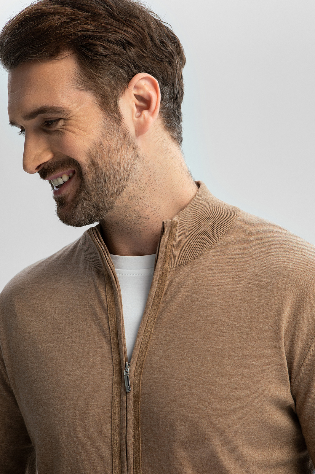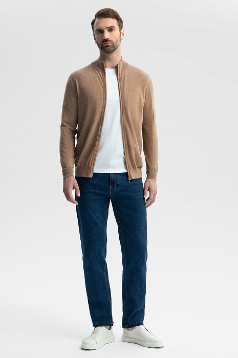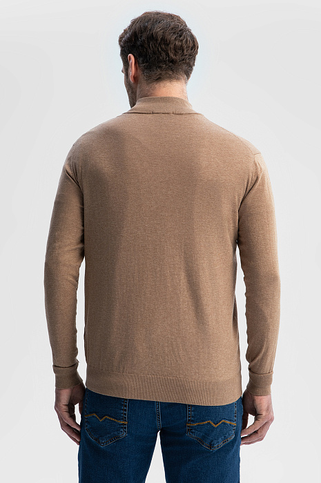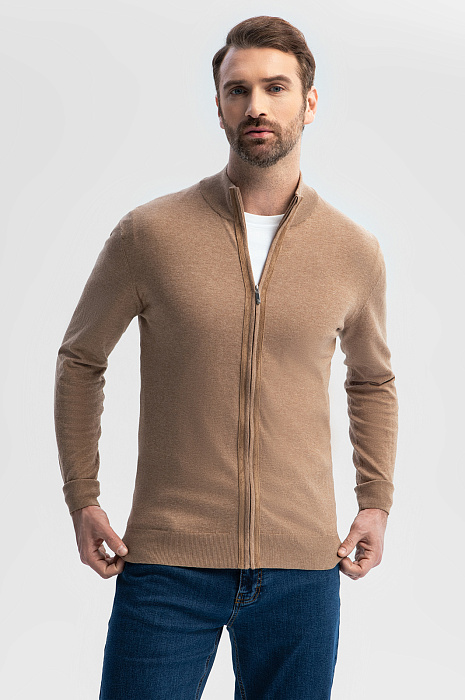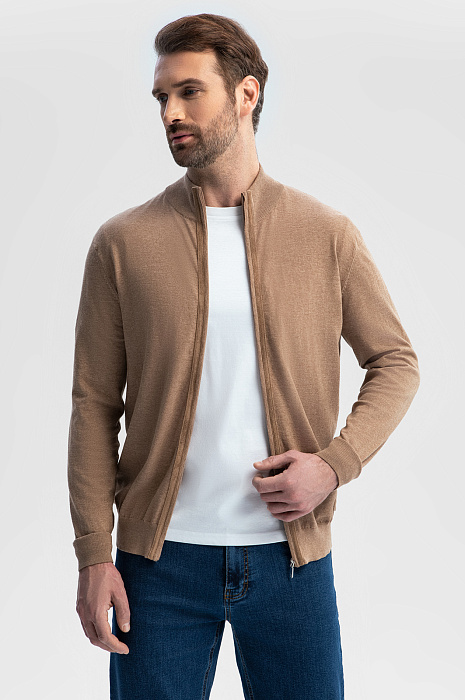 Бежевый кардиган из хлопка Пима с отделкой из алькантары в Саратове