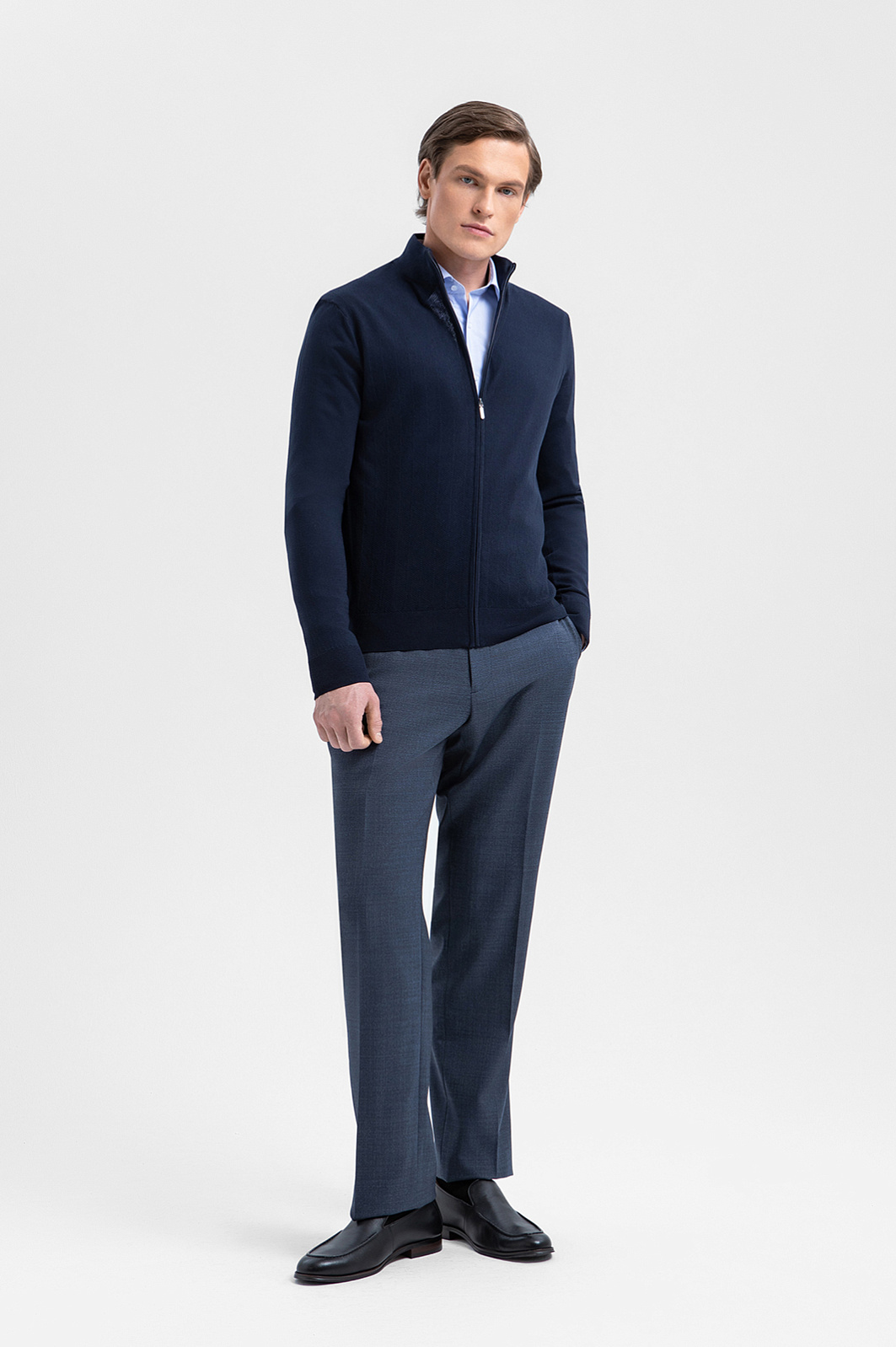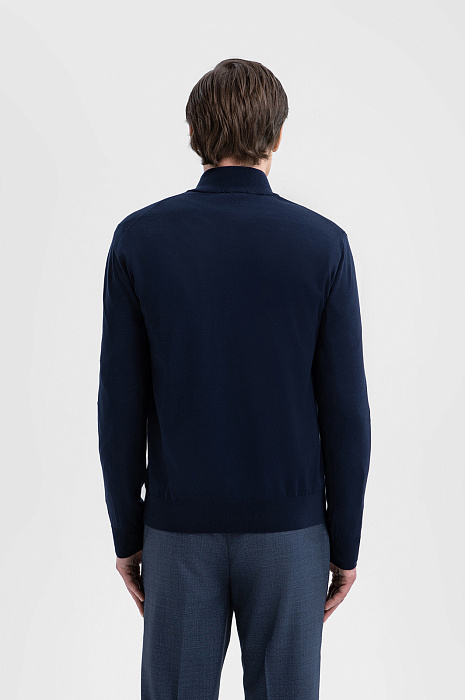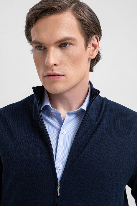 Кардиган KANZLER в синем оттенке из 100% хлопка Пима объединяет сдержанную элегантность, комфорт и превосходное качество материала. Его удобно носить поверх рубашки или поло в городской среде или в путешествии. Минималистичный дизайн привлекает внимание к лаконичному, почти спортивному силуэту и фактурной поверхности ткани, которая придаёт кардигану особую выразительность. Дорогой трикотаж выполнен из хлопка Пима — премиального материала, волокна которого значительно длиннее и тоньше, чем у обычного хлопка, благодаря чему полотно приобретает особую мягкость, исключительную прочность и способность сохранять безупречный внешний вид сезон за сезоном.