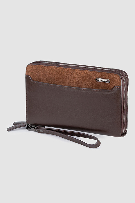 Клатч из натуральной кожи и замши, цвет коричневый, цена 12 990 руб., код 270862 - купить в Саратове в интернет-магазине KANZLER