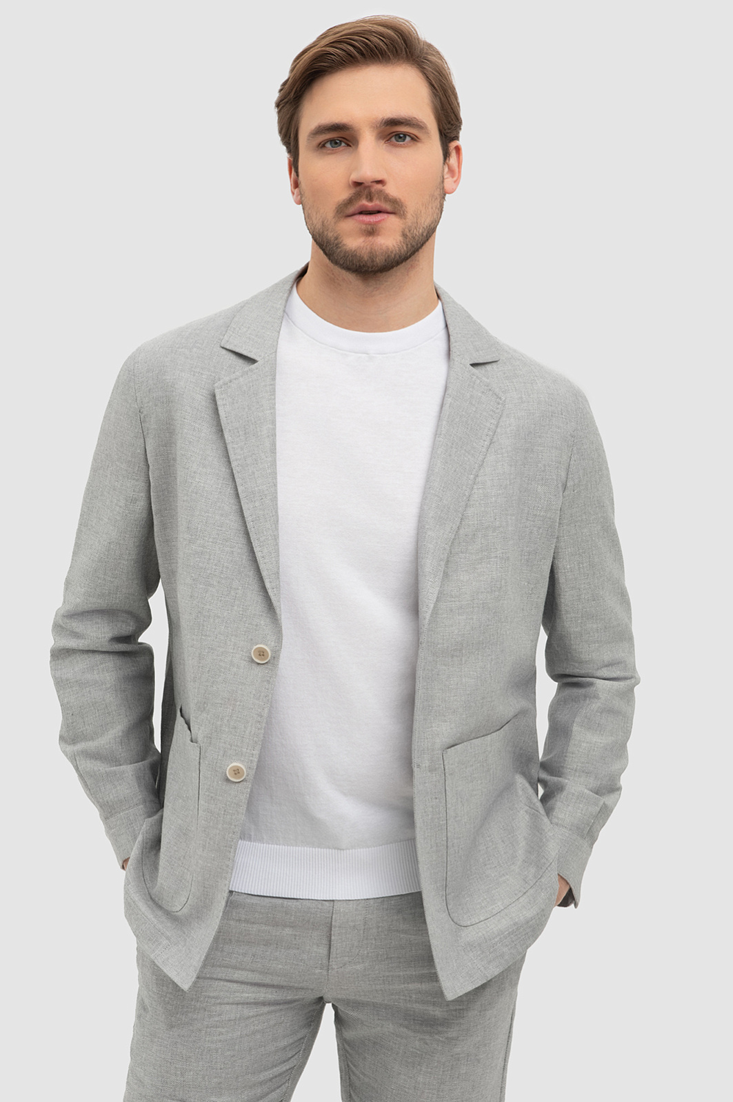 Серый костюм изо льна и хлопка в Саратове