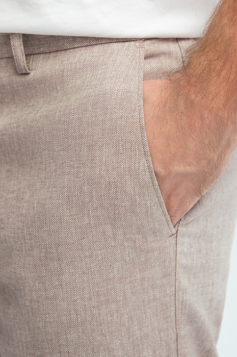 Микс классических и спортивных деталей в светло-бежевом костюме KANZLER из хлопка и льна выглядит стильно и оригинально. Небольшими акцентами на светлом фоне служат пуговицы шоколадного оттенка. Пара составлена из облегченного пиджака с манжетой на пуговицах и аккуратными накладными карманами, который может выполнять функцию «второй рубашки», и удобных брюк на кулиске. Натуральный смесовый материал полотняного переплетения, созданный из легкого воздушного хлопка и прочного износоустойчивого льна, — наилучший выбор для теплого сезона. Ткань сохраняет оптимальную для тела температуру и создает ощущение прохлады в жаркие дни.