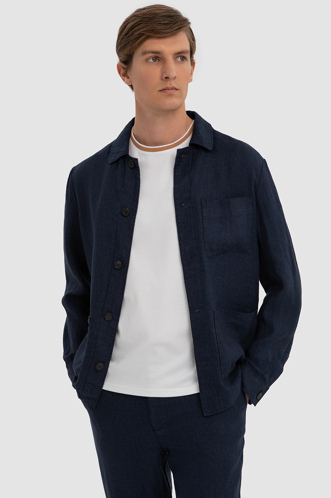 Синий пиджак изо льна и вискозы