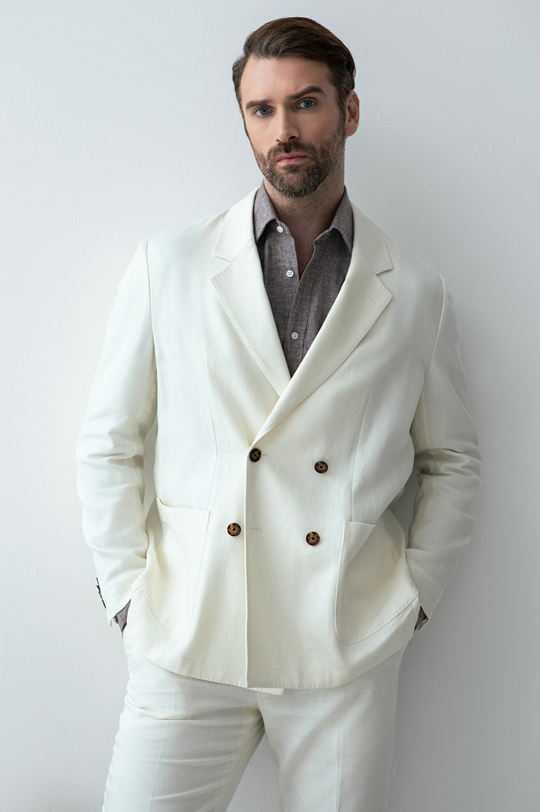 Пиджак двубортный изо льна и тенсела