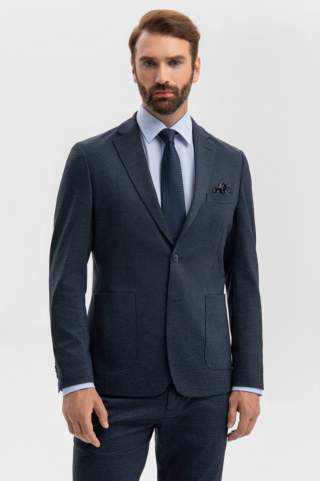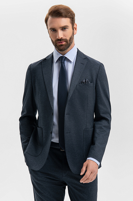 Офисный однобортный пиджак KANZLER сдержанного серо-синего оттенка, прилегающего кроя без подкладки — непринужденный вариант для повседневного делового стиля. Универсальная практичная модель подходит для любого сезона. Зауженный крой подчеркивает контраст между линиями плеч и талии, создавая выразительный силуэт. Накладные карманы придают образу современный городской вид. Облегченная конструкция обеспечивает комфорт и свободу движений. Практичная смесовая ткань в микроклетку (60% полиэстер, 36% район, 4% спандекс) устойчива к загрязнениям, хорошо пропускает воздух, держит форму и умеет адаптироваться к особенностям фигуры. Параметры модели: рост 189, 102-80-99 Размер на модели: 50