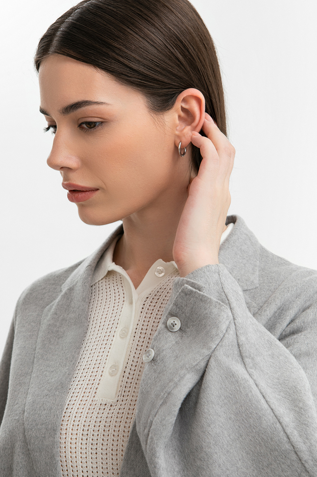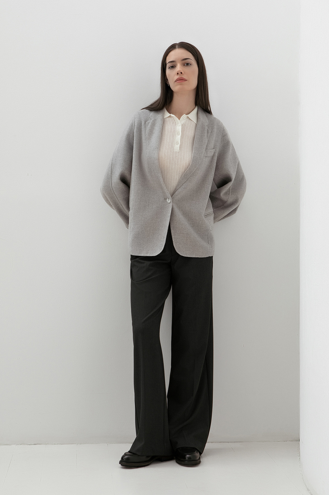Изысканный дизайнерский светло-серый пиджак KANZLER свободного кроя с объемными рукава из смесовой шерсти с мягким свободным кроем — находка для ценителей женственного стиля. Такая модель уместна и в деловых, и в повседневных романтичных образах. Широкий вырез визуально вытягивает силуэт. Лаконичная застёжка на одну пуговицу добавляет образу непринужденности. Объёмные рукава красиво драпируются и собираются на запястьях. Приятный на ощупь материал сохраняет естественное тепло тела, не допуская перегревания. Он сделан на основе натуральной шерсти с добавлением нейлона и вискозы — для износоустойчивости и практичности. Гладкая прочная подкладка (полиэстер и вискоза) облегчает надевание.