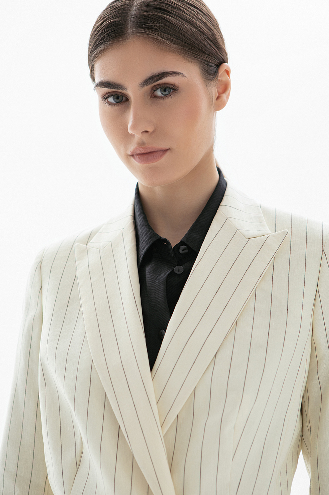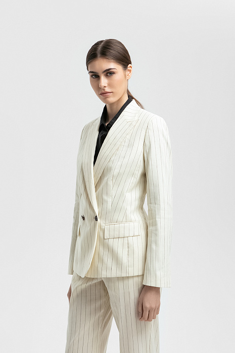 Пиджак из шерсти, льна и шелка, цвет молочный, цена 22 990 руб. - купить в интернет-магазине KANZLER