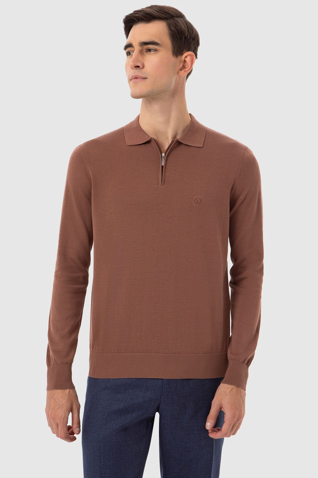 Поло KANZLER из лимитированной коллекции оттенка какао настраивает на приятный отдых в горном шале и загородном клубе. Роскошная вещь из дорогого ценного материала, созданного из хлопка, шелка и льна, адресована тем, кто ценит комфорт, индивидуальность и элегантность. Модель украшена вышитой эмблемой. Нотку спортивного шика привносит застежка-молния с аккуратным язычком из белого металла. Дорогой смесовой материал обладает уникальными достоинствами трех видов натуральных волокон. Хлопок обеспечивает воздухообмен и оптимальную для тела температуру, шелк — легкий блеск и ощущение нежного прикосновения, лен — гигроскопичность и устойчивость к загрязнению. Параметры модели: рост 192, 101-76-97 Размер на модели: M
