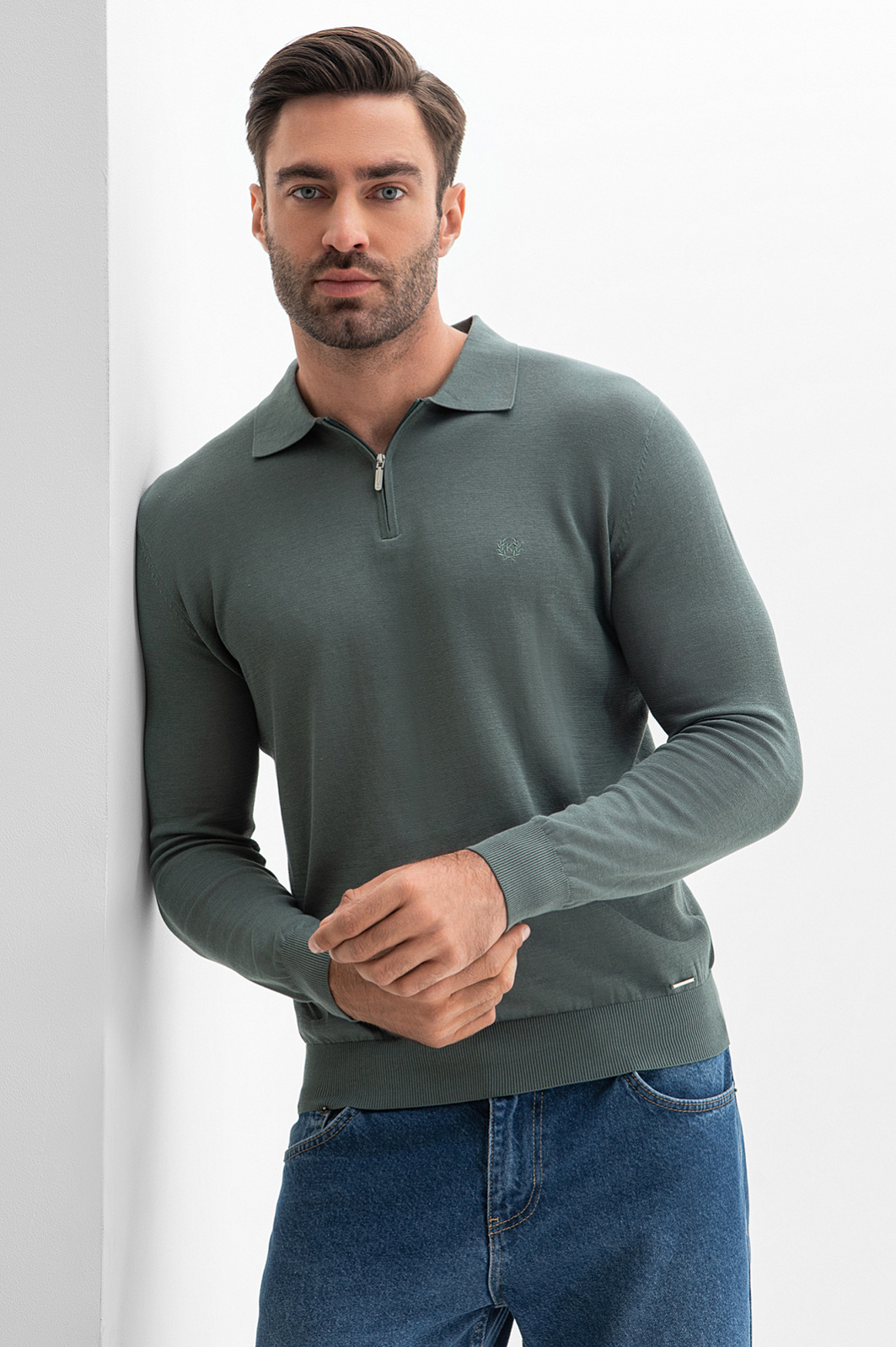 Поло KANZLER из хлопка, шёлка и льна - комфортная вещь, которая станет основой демисезонных образов. Модель с фирменным гербом и удобной застежкой на молнии идеально подчеркивает фигуру благодаря приталенному крою и подходит как для кежуал-образов, так и для более изысканных сочетаний. Главное преимущество изделия — премиальный состав. Смесь натуральных волокон — хлопка, шёлка и льна — обладает уникальными свойствами. Хлопок делает ткань дышащей и приятной на ощупь, лён обеспечивает лёгкость и прохладу, а шёлк добавляет изделию мягкость и лёгкий благородный блеск. Эта комбинация материалов не только гарантирует максимальный комфорт, но и подчёркивает статус и изысканность изделия. Цвет модели — глубокий бутылочный зелёный — настоящий тренд сезона. Он выгодно оттеняет кожу и легко комбинируется с классическими и повседневными вещами. Советуем носить это поло с брюками, чтобы создать стильный образ, который будет уместен как на прогулке, так и на деловой встрече. Параметры модели: рост 192, 108-83-102 Размер на модели: M