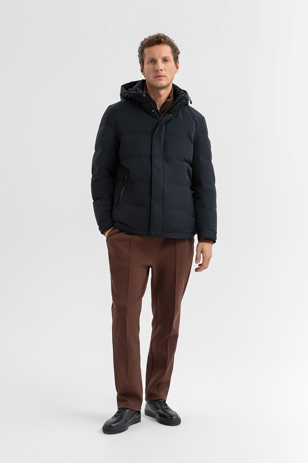 Укороченный темно-синий короткий пуховик KANZLER с капюшоном — необходимая и практичная вещь для холодного сезона. Воротник-стойка защищает от холода, а планка на скрытых кнопках надёжно прикрывает молнию. Манжеты регулируются с помощью липучек, предотвращая продувание. У карманов имеются застежки-молнии. Внутренний карман предназначен для хранения ценных мелочей. Стёганая структура с равномерным распределением наполнителя (90% пух, 10% перо) обеспечивает тепло, сохраняя лёгкость и мобильность. Верх выполнен из технологичной ткани (смесь нейлона и спандекса), которая не поддается ни ветру, ни дождю, ни снегу. Подкладка сделана из прочного износоустойчивого полиэстера. Параметры модели: рост 188, 97-82-92 Размер на модели: 50