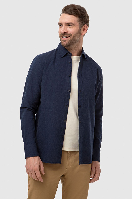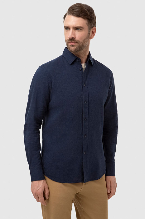 Рубашка изо льна и хлопка, цвет синий, цена 6 990 руб., код 266935 - купить в Саратове в интернет-магазине KANZLER