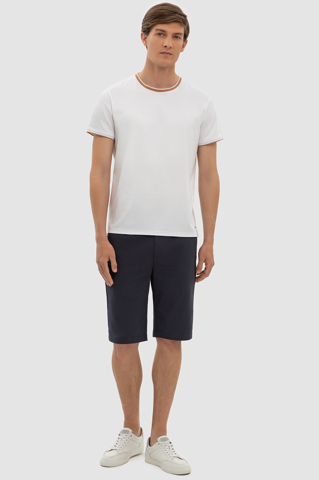 В шортах KANZLER дизайнеры повторили крой кежуал брюк. Прямой классический крой, скрытая планкой молния, прорезные карманы сзади и по бокам - модель придаст стиля расслабленным летним образам с кедами и поло и идеально подходит для летнего гардероба. Выполненные из нежного хлопка с добавлением эластана, они обеспечивают непревзойденный комфорт и свободу движений. Это универсальная и практичная модель - для городских аутфитов и пляжного отдыха. Глубокий, насыщенный черничный цвет добавляет элегантности в образ, делая шорты отличным выбором для любого случая. В качестве декора использовали брендированную пуговицу оранжевого цвета. Параметры модели: рост 191, 97-77-99 Размер на модели: 50