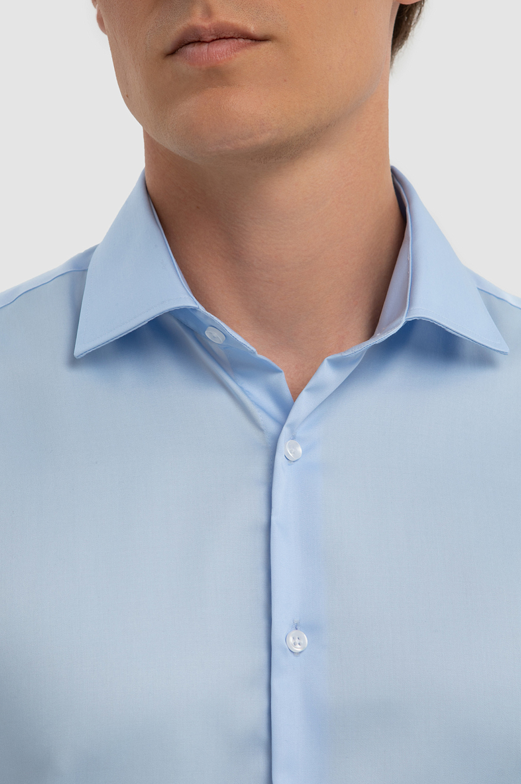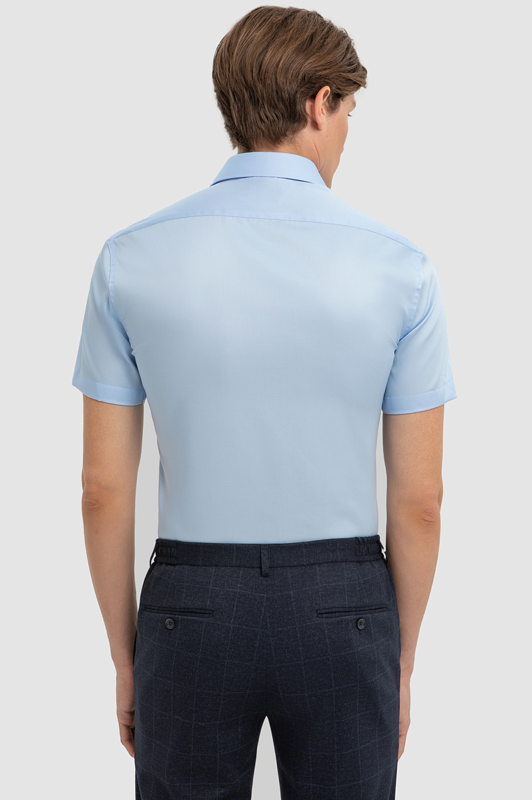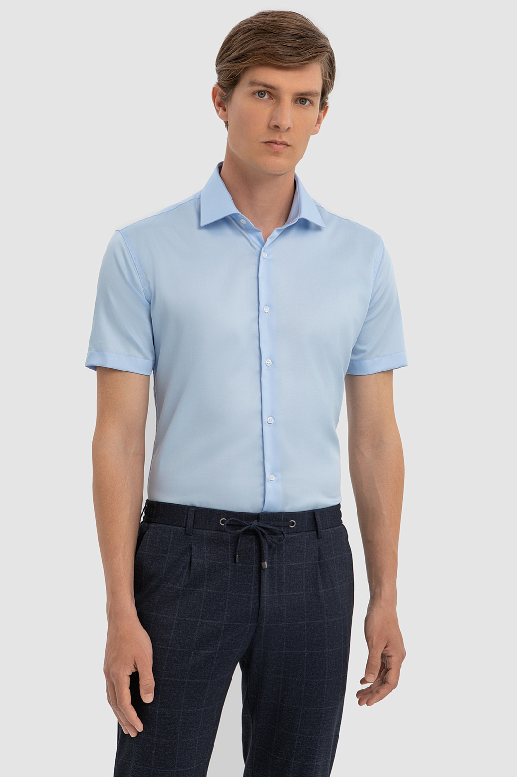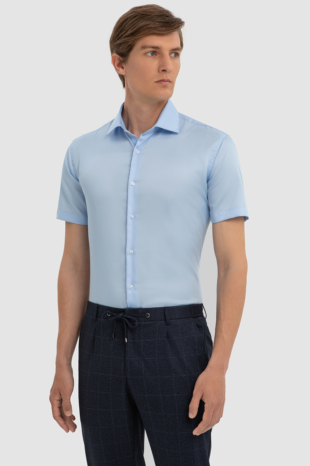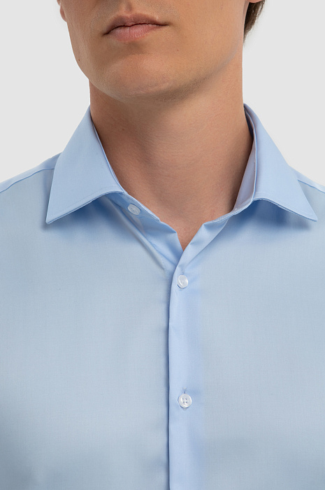 Хлопковая голубая сорочка с коротким рукавом, легкая в уходе, цвет голубой, цена 6 990 руб., код 267498 - купить в Саратове в интернет-магазине KANZLER