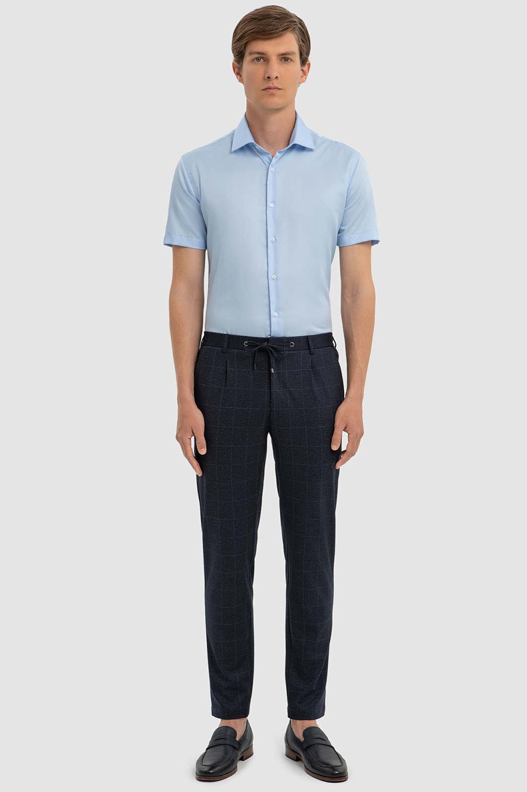Хлопковая голубая сорочка с коротким рукавом, легкая в уходе