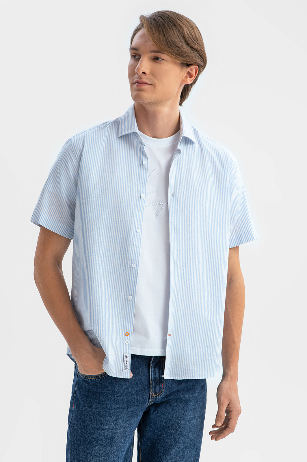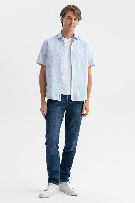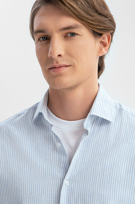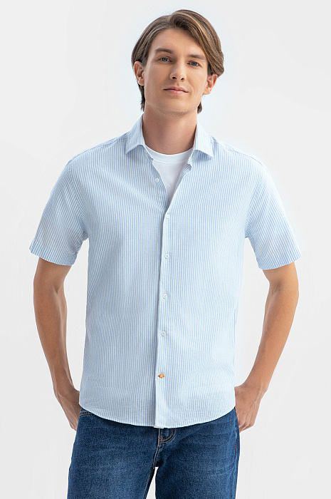 Голубая сорочка KANZLER с коротким рукавом – идеальный спутник для самых разных мероприятий в теплое время года: от барбекю до вечерних встреч с друзьями или прогулок по набережной. Особый комфорт создает уникальный материал премиального качества от Getzner, австрийского производителя с более чем 200-летней историей. Натуральные волокна льна и хлопка обеспечивают отличную воздухопроницаемость и легкость, а также прочность и долговечность. Голубой цвет и узор в тонкую полоску привносят в образ свежесть и динамичность. Наши стилисты рекомендуют дополнить модель белой футболкой, прямыми джинсами и белыми кедами из натуральной кожи. Параметры модели: рост 191, 97-77-99 Размер на модели: 40