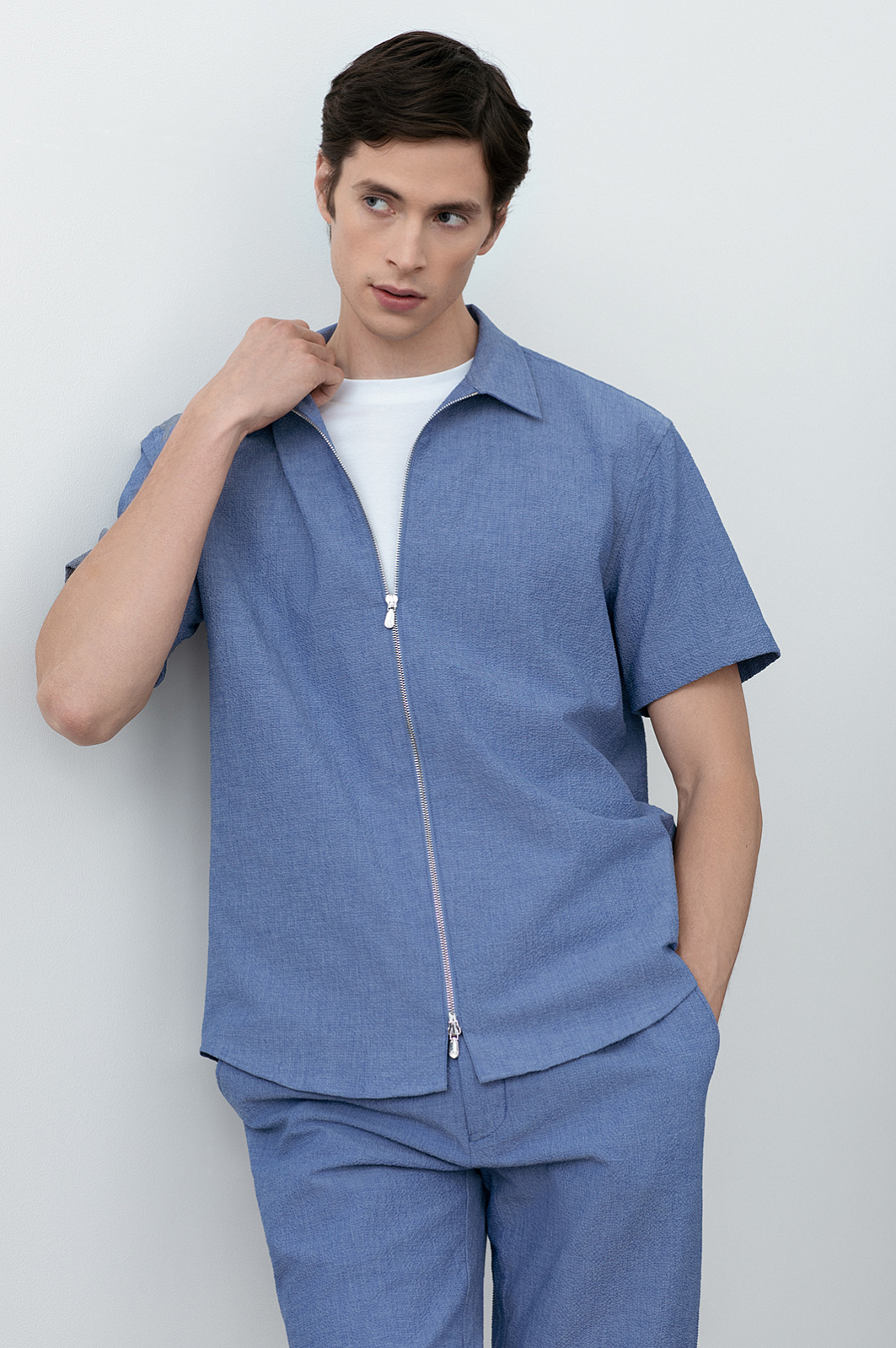 Легкая сорочка KANZLER на молнии из лимитированной коллекции, сшитая из фактурной васильковой хлопковой ткани, — образец современного спортивного дизайна и бескомпромиссного комфорта. Модель свободного кроя с коротким рукавом и удобной двухзамковой молнией незаменима для отдыха. Для создания свежего летнего образа ее можно носить с белой майкой или футболкой. Воздушная ткань из чистого гипоаллергенного хлопка защищает тело от вредного ультрафиолетового излучения и перегрева. Натуральные волокна поддерживают оптимальную температуру и свежесть тела. Параметры модели: рост 189, 91-78-95 Размер на модели: 50