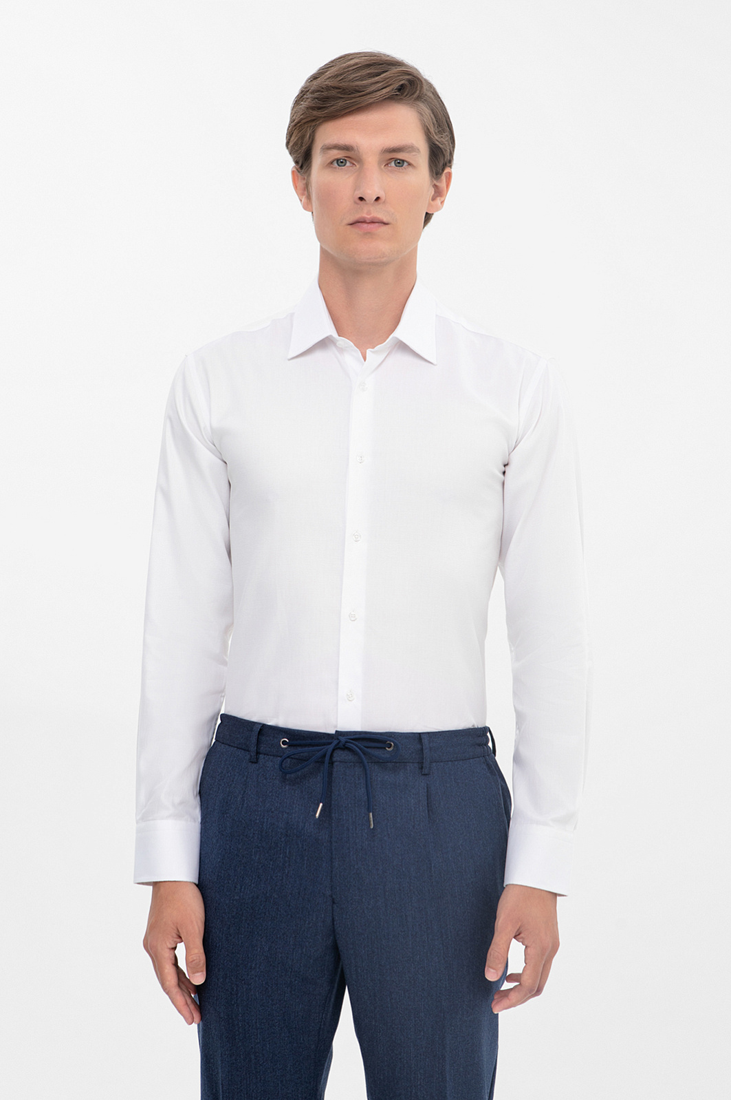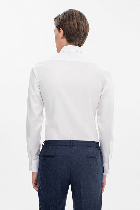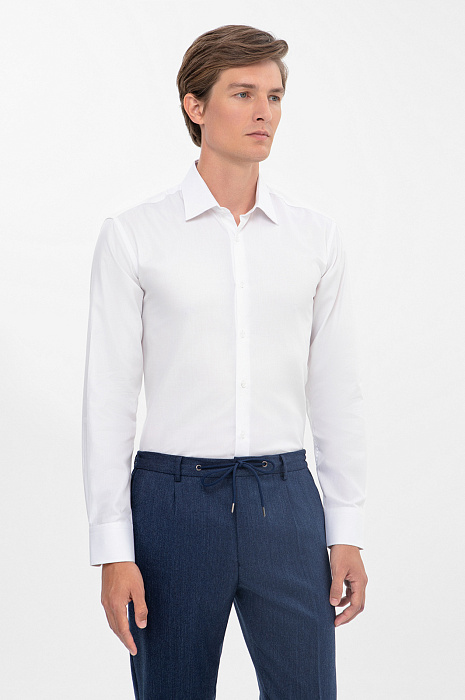 Элегантная белоснежная сорочка KANZLER из чистого хлопка — обязательный элемент мужского гардероба и тот самый чистый лист, с которого начинается любое грандиозное начинание. Приталенный крой следует линиям тела, ненавязчиво подчеркивая мужественность. Роскошная ткань из легчайшего 100-процентного хлопка, созданная европейским лидером в производстве натуральных рубашечных тканей Getzner (Австрия), бережет свежесть и сохраняет естественное тепло тела. Гипоаллергенные воздухопроницаемые волокна не раздражают даже самую чувствительную кожу. Параметры модели: рост 191, 97-77-99 Размер на модели: 40