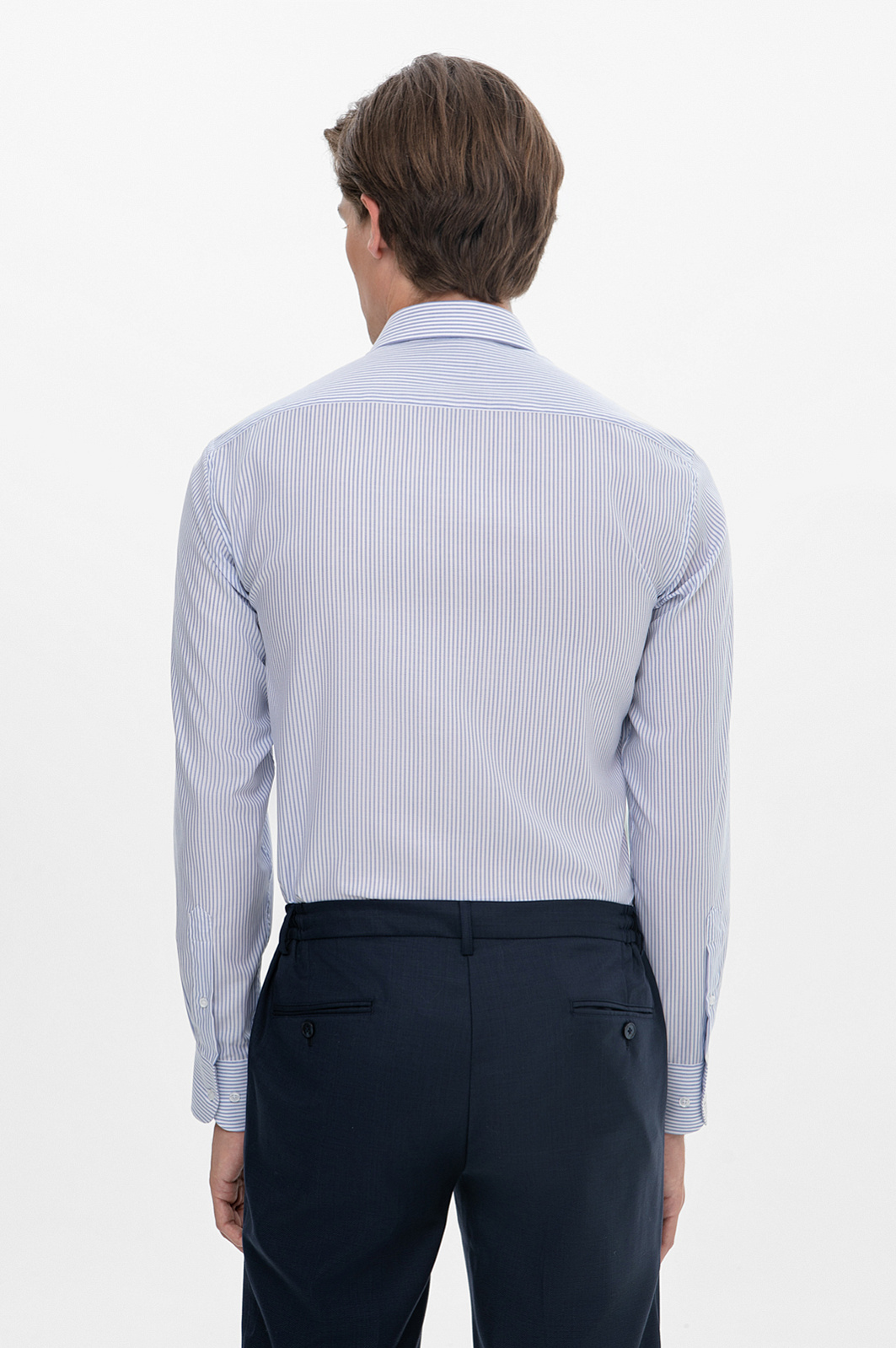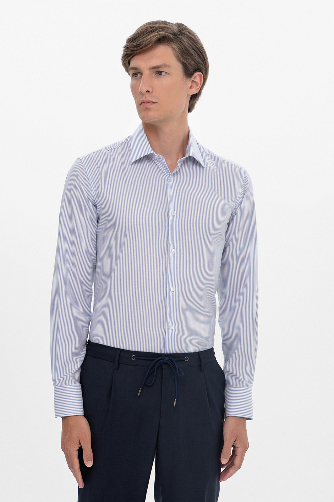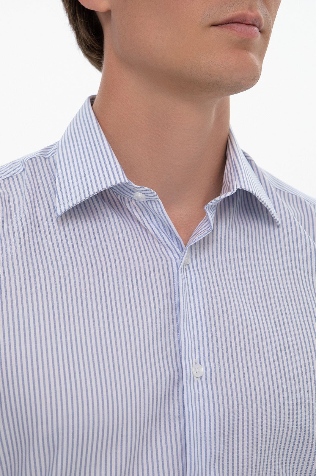 Сорочка из хлопка в полоску, легкая в уходе, цвет голубой, цена 5 990 руб., код 268628 - купить в Саратове в интернет-магазине KANZLER