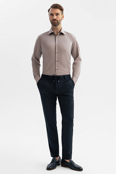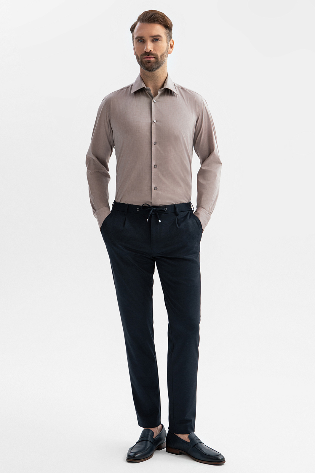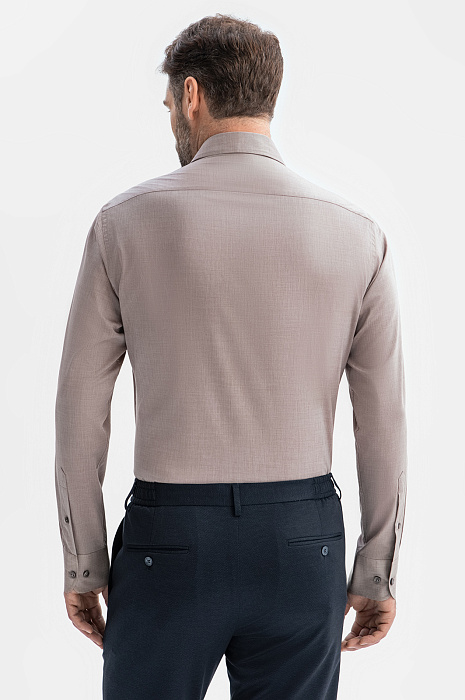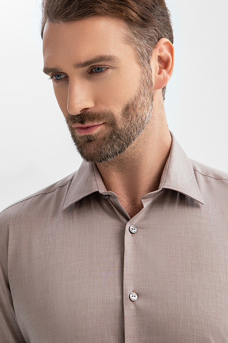 Сорочка KANZLER светло-кофейного оттенка из хлопка и лиоцелла привнесет в повседневный образ умиротворение и спокойствие. Классическая модель достаточно универсальна и подходит для деловых и неофициальных поводов. Слегка прилегающий крой подчеркивает достоинства мужественной фигуры. Пара пуговиц на манжетах позволяет застегивать рукава свободно или плотнее, если с сорочкой надевать пиджак. Ткань состоит из легкого гипоаллергенного хлопка и лиоцелла, созданного из натурального сырья. Материал отличается практичностью и полезными для тела свойствами — прочностью, воздухопроницаемостью и мягкостью. Параметры модели: рост 189, 102-80-99 Размер на модели: 40