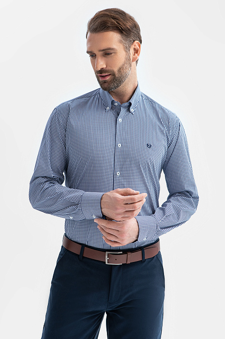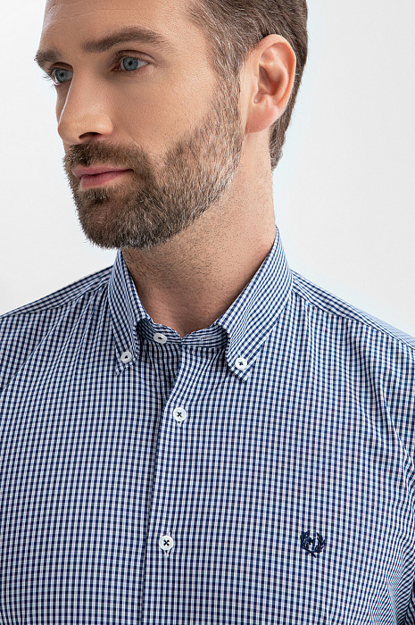 Сорочка из хлопка в клетку, синий цвет, цвет синий, цена 5 990 руб., код 269323 - купить в Саратове в интернет-магазине KANZLER