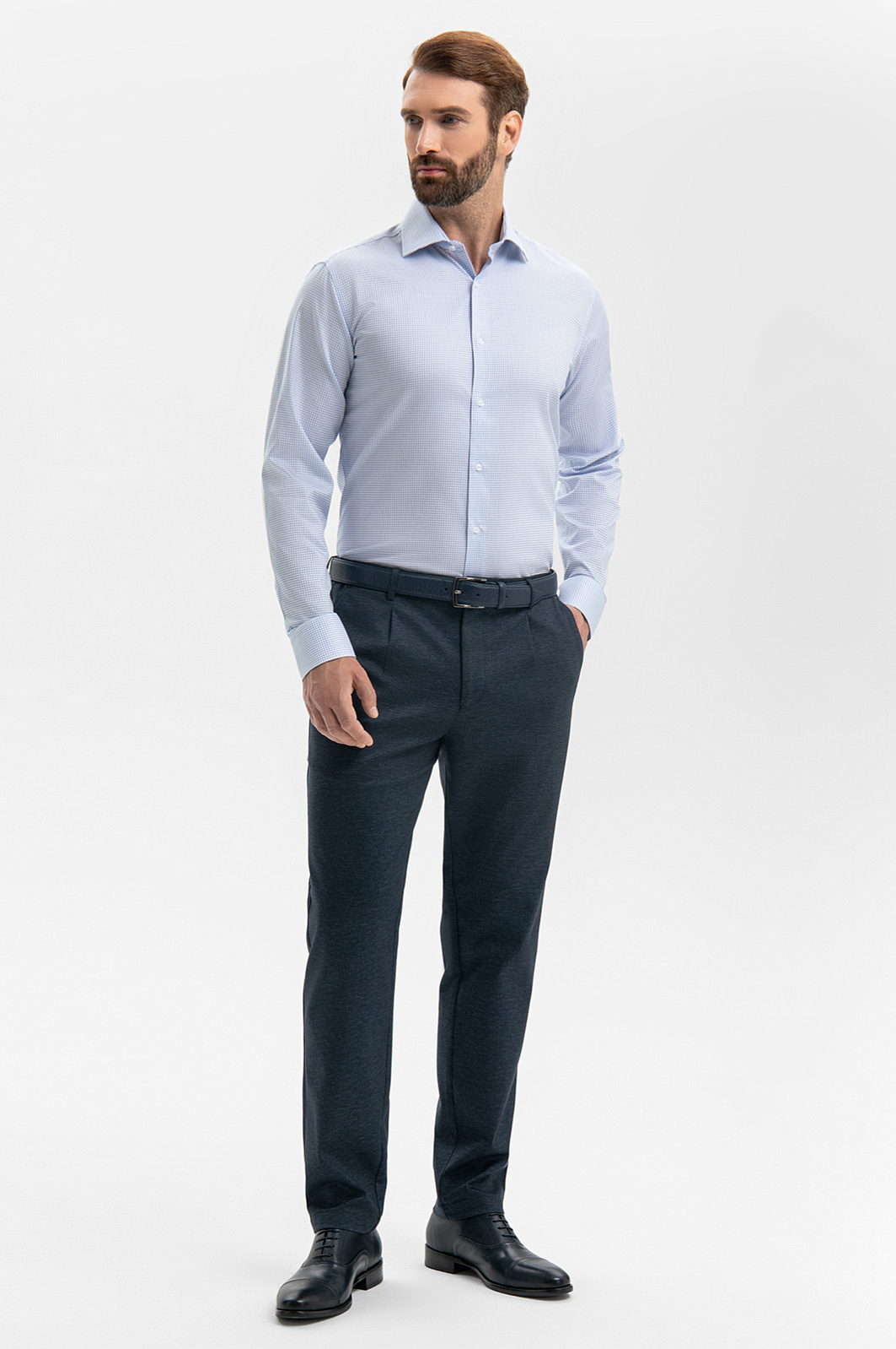 Шикарная сорочка, смотрится очень стильно. Хорошо сочетается с серыми и синими брюками. Сохраняет вид в течение дня, практически не мнётся.