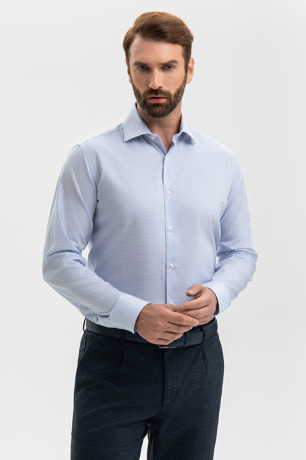 Белая сорочка KANZLER в тонкую светло-голубую клетку — современная интерпретация делового стиля, в котором уместны сдержанность и индивидуальность. Универсальный дизайн позволяет варьировать степень строгости, сочетая сорочку с классическими и неформальными брюками. Приталенный силуэт подчёркивает линию плеч и талию, создавая собранный и уверенный образ. Сорочка выполнена из 100% хлопка — лёгкого, дышащего и гипоаллергенного материала, который сохраняет ощущение свежести в течение всего дня. Это вещь, к которой приятно возвращаться снова и снова. Параметры модели: рост 189, 102-80-99 Размер на модели: 40
