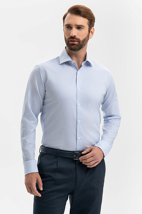 Сорочка из хлопка, цвет голубой, цена 7 990 руб., код 270485 - купить в Саратове в интернет-магазине KANZLER