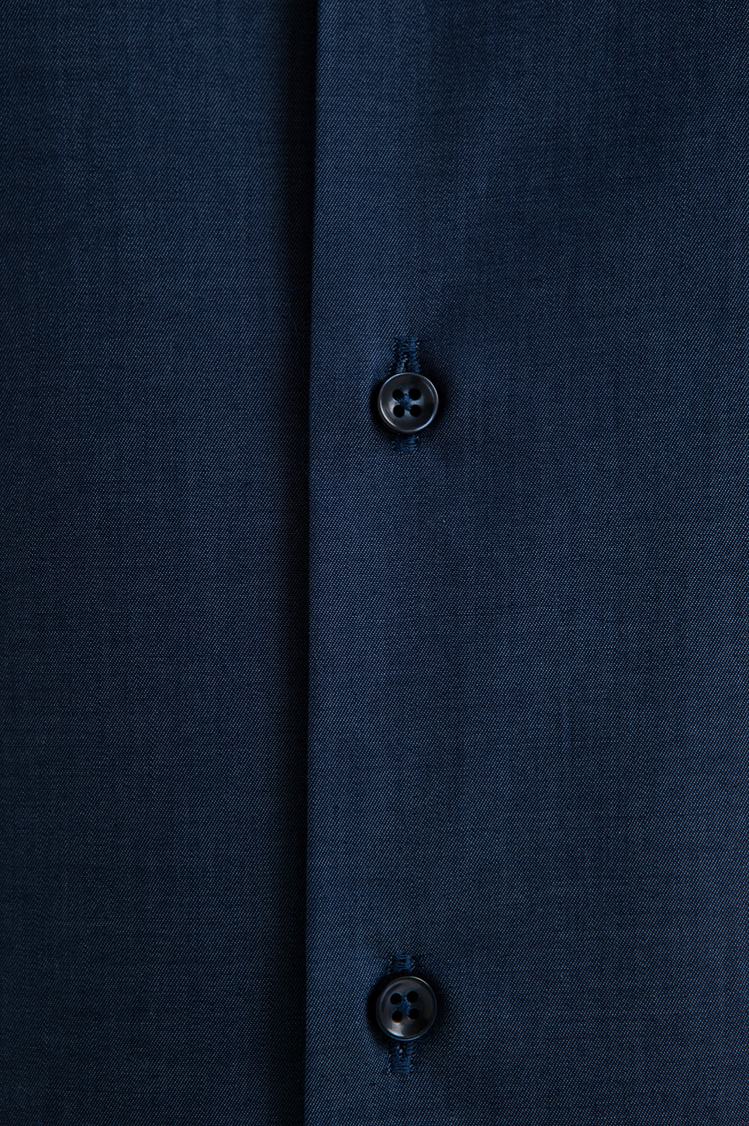 Сорочка KANZLER сумеречно-синего оттенка — воплощение сдержанной элегантности, шика и безупречного вкуса. Глубокий благородный цвет гармонично сочетается как с деловыми костюмами, так и с менее формальными повседневными вещами. Зауженный крой мягко обрисовывает контуры тела. Французская планка подчёркивает лаконичную простоту модели. Натуральный материал произведён старинной итальянской мануфактурой Tessitura Carlo Bassetti, которая специализируется на производстве роскошных рубашечных тканей. Гипоаллергенное полотно из хлопка (96%) отличается мягкостью и воздухопроницаемостью. Добавление эластана (4%) придаёт ему лёгкую эластичность и помогает сохранять форму.