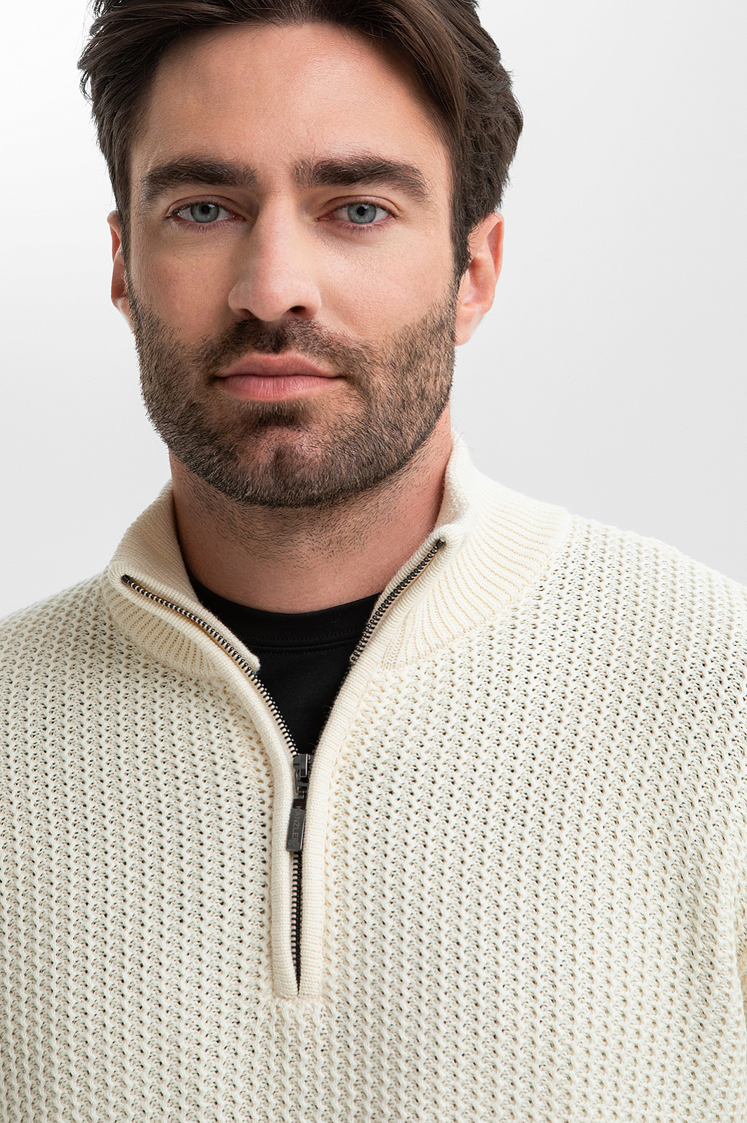 Свитер KANZLER – воплощение философии минимализма, где каждая деталь доведена до совершенства. Молочный цвет не просто универсален – он создает ауру благородной чистоты, освежая образ и сочетаясь с одеждой любых оттенков. Молния на воротнике позволяет одним движением трансформировать образ и регулировать комфортную температуру в переменчивую погоду межсезонья. Мягкий 100-процентный хлопок премиального качества бережен даже к чувствительной коже и сохраняет форму после многократных стирок. Стилисты рекомендуют дополнить образ серыми брюками и черной футболкой. Параметры модели: рост 192, 108-83-102 Размер на модели: M