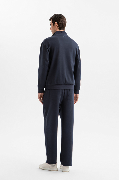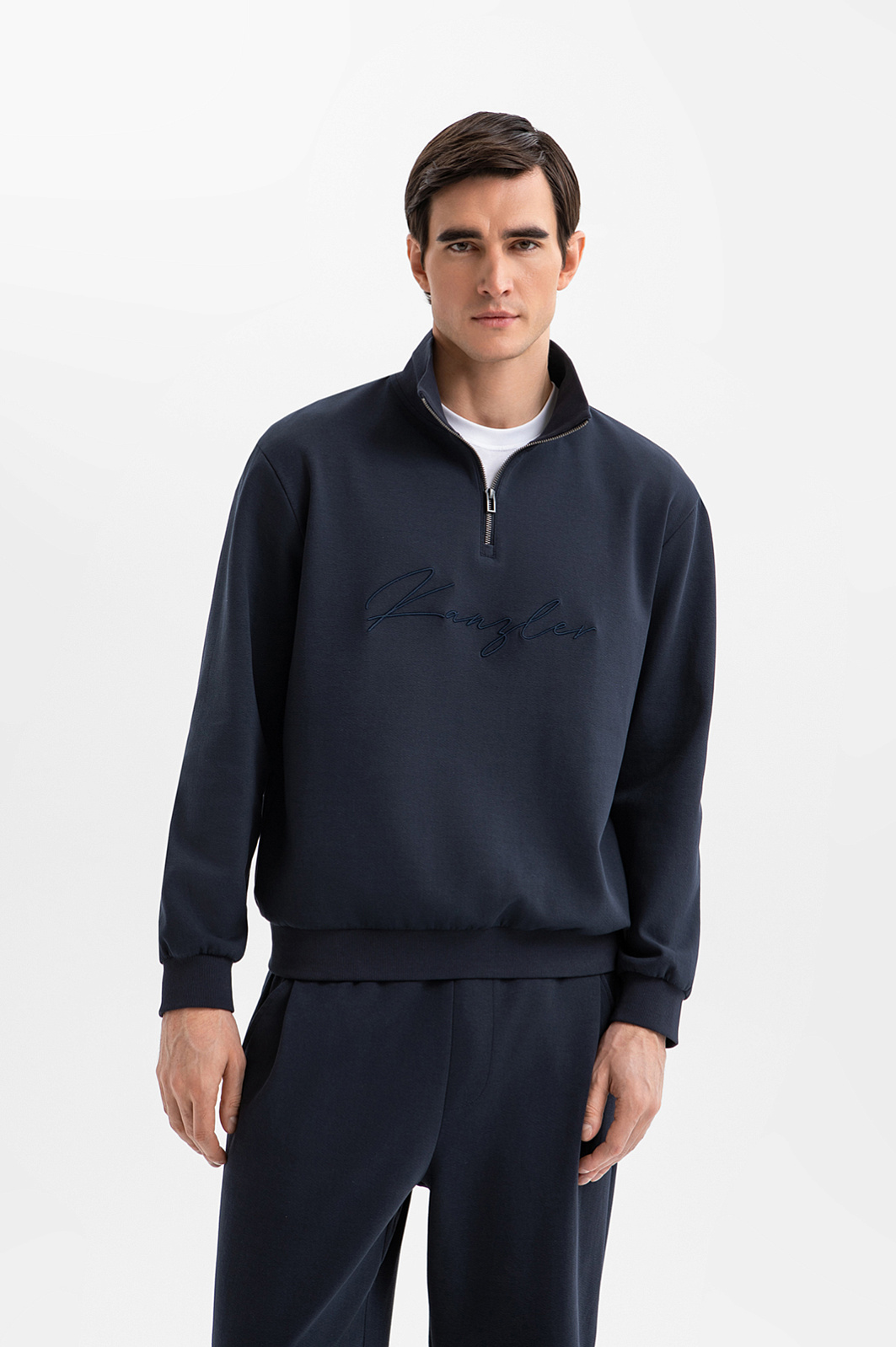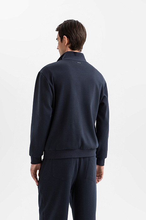 Синяя хлопковая толстовка KANZLER с высоким воротником и молнией до середины груди — выверенный баланс комфорта и современной городской эстетики. Дизайн — минималистичный, монохромный и функциональный. Передняя часть украшена вышитым логотипом в тон. Высокий воротник защищает от ветра и сохраняет естественное тепло, а трикотажные резинки на манжетах и по низу мягко придерживают края при движении, сохраняя форму. Плотный дышащий трикотаж из гипоаллергенного хлопка с добавлением прочного полиэстера и спандекса приятен к телу, устойчив к деформации и сохраняет аккуратный вид даже при активной носке.